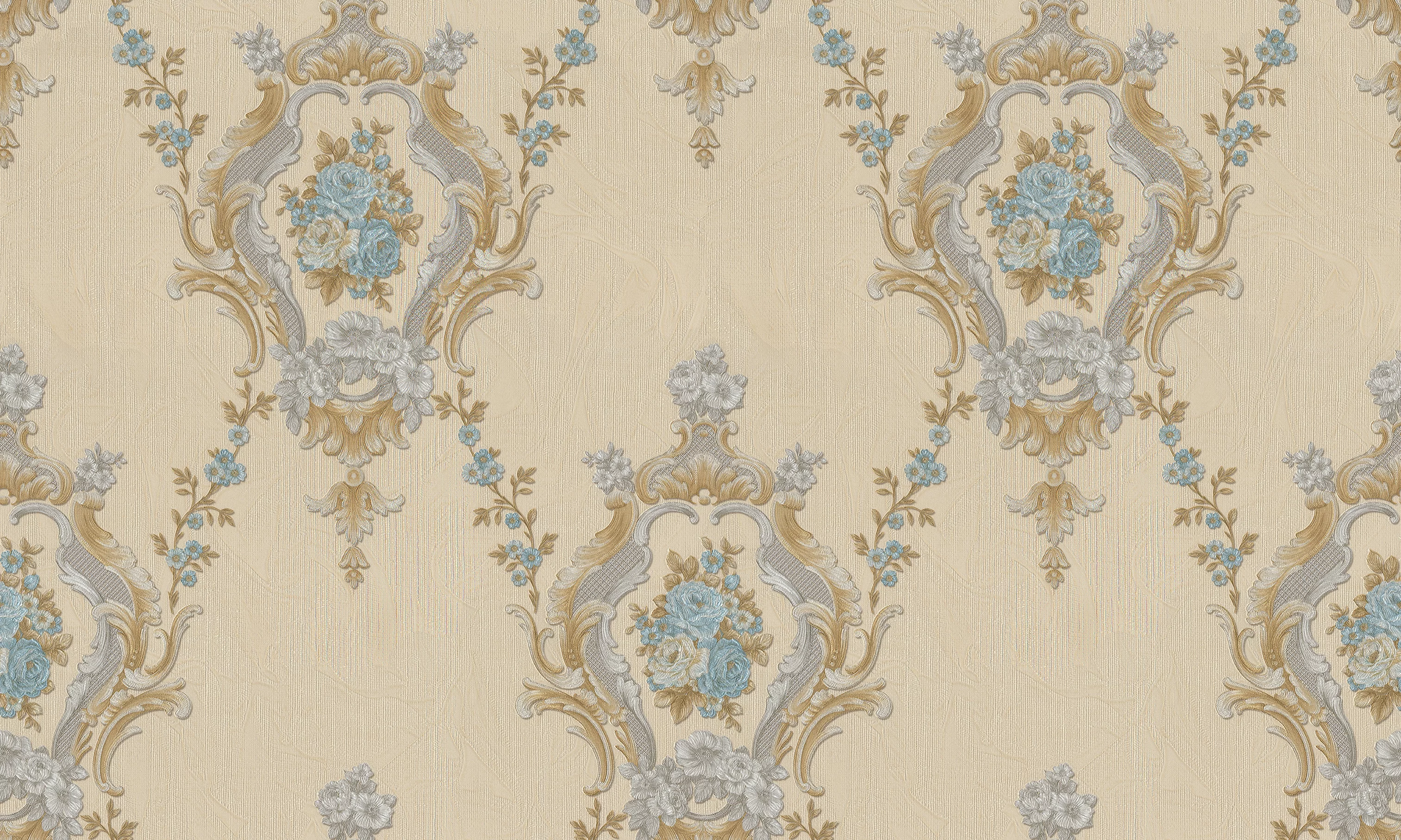 Tapetul ROYAL 93099 aduce o notă delicată și romantică în orice interior prin combinația sa armonioasă de motive florale baroc și paletă cromatică luminoasă.