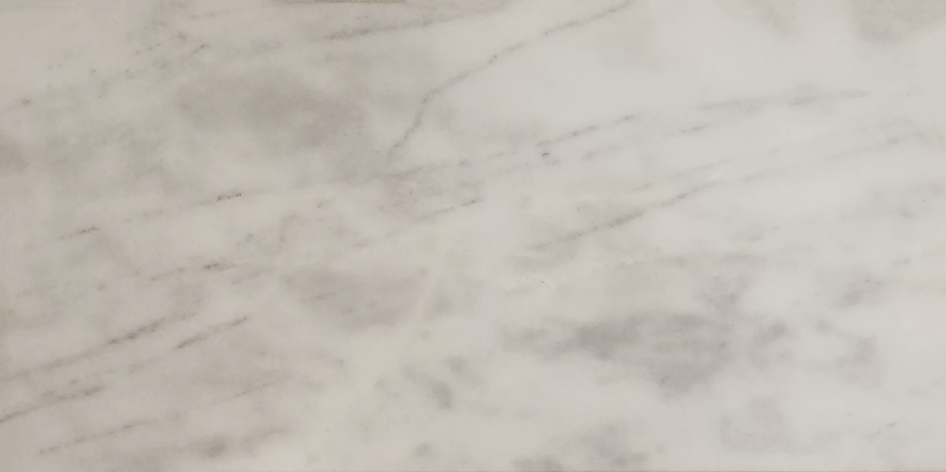 MARMURA MUGLA GOLDEN WHITE - 30.5X61X1 cm, placa subțire din marmură alba cu insertii gri polisata, lucioasa, cu margini teșite, ideal pentru interioare elegante și luminoase.