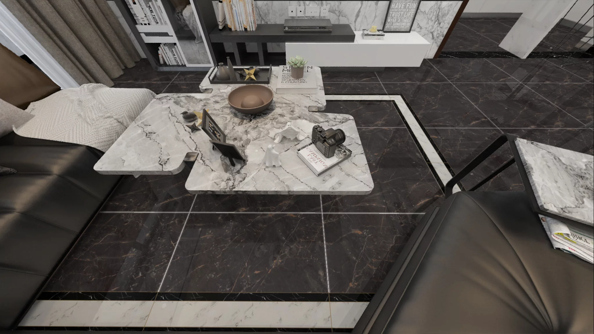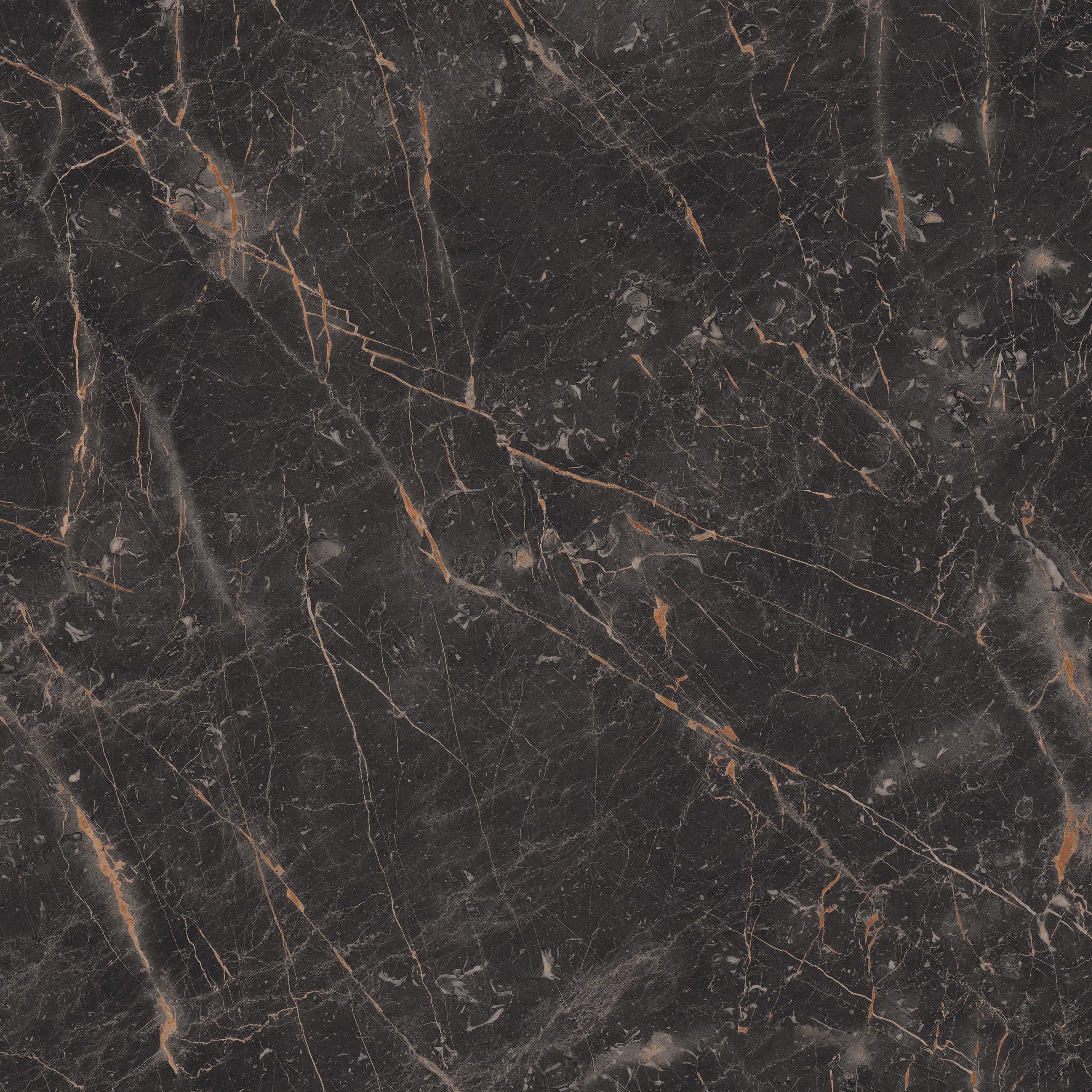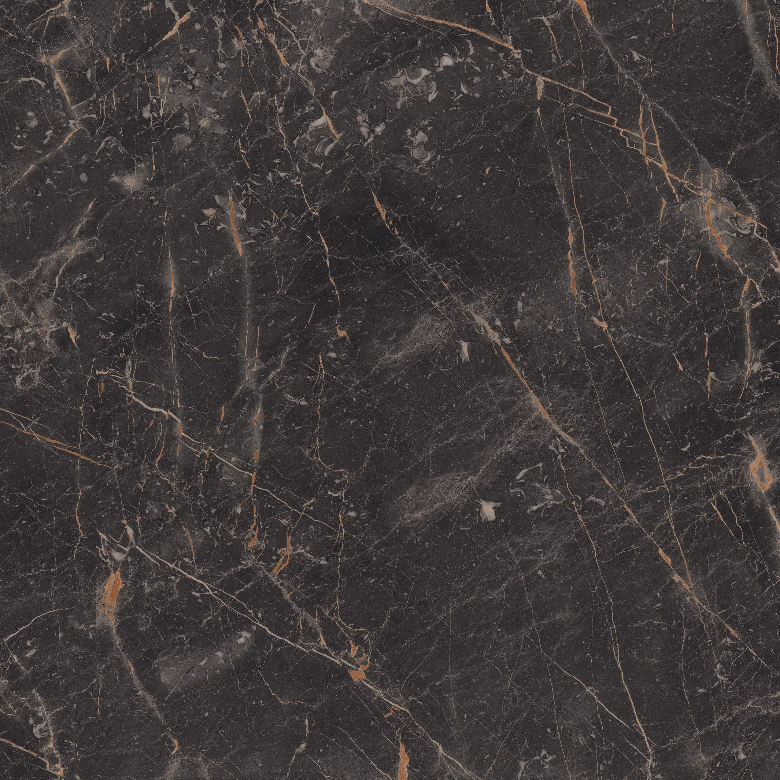 Suprafața lucioasă, obținută prin tehnologie Inkjet Nano și Silk Printing, redă un aspect spectaculos, cu vene aurii care se evidențiază pe fundalul negru profund.