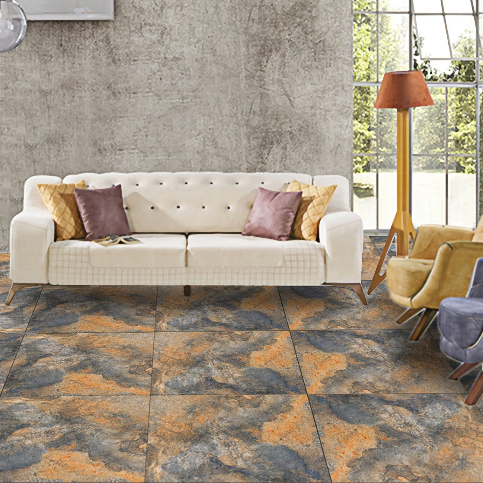 Suprafața mată, în combinații autentice de gri antracit și accente ruginii, creează un efect vizual deosebit, ce adaugă profunzime și caracter încăperii.