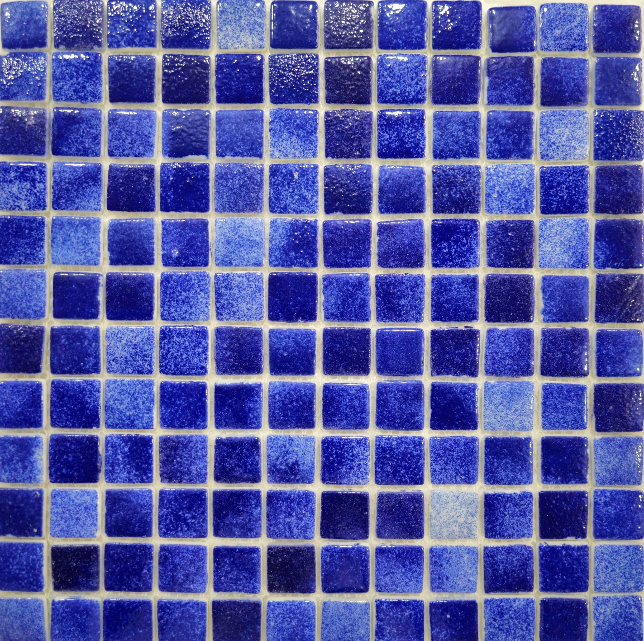 MOZAIC DIN STICLA H103 (chip 2.5x2.5) - 31.5X31.5 cm, nuanțe de albastru intens, finisaj lucios, ideal pentru piscine, băi și spații umede, interior sau exterior.