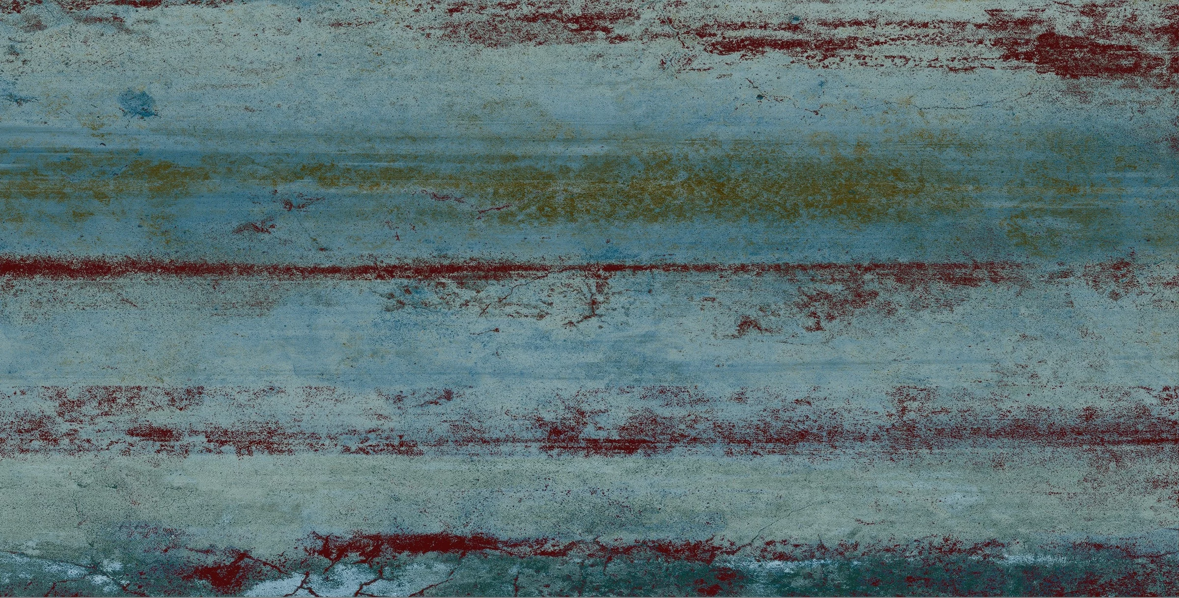 GRESIE ETHOS VERDE GRANDE - 60X120 cm, porțelanată, în nuanțe de verde și albastru cu efecte de rugină și accente metalice, aspect modern-industrial, finisaj mat, potrivită pentru interior și exterior.