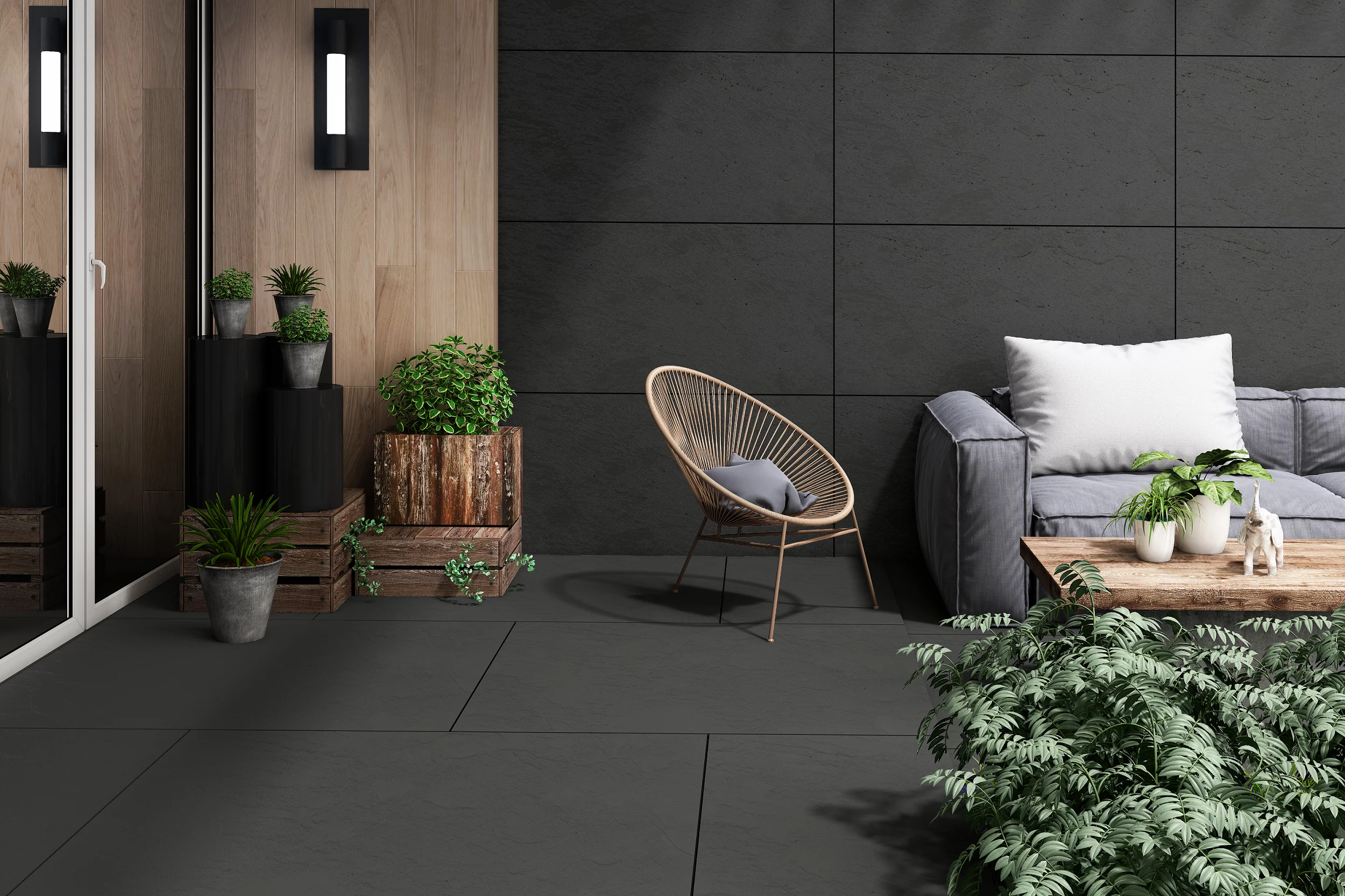 Gresia STONELIFE CHARCOAL îmbină eleganța contemporană cu rezistența porțelanului de calitate superioară.
