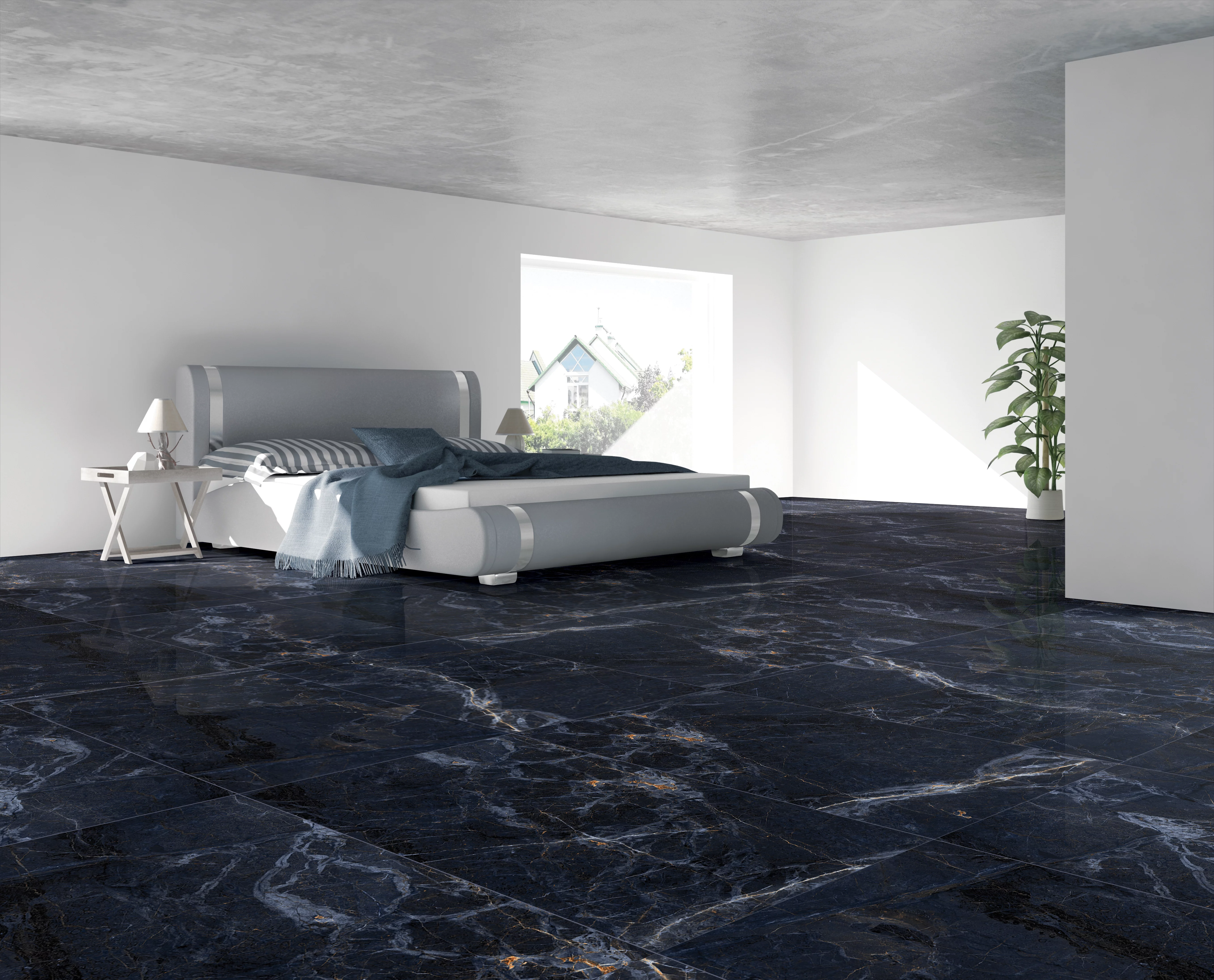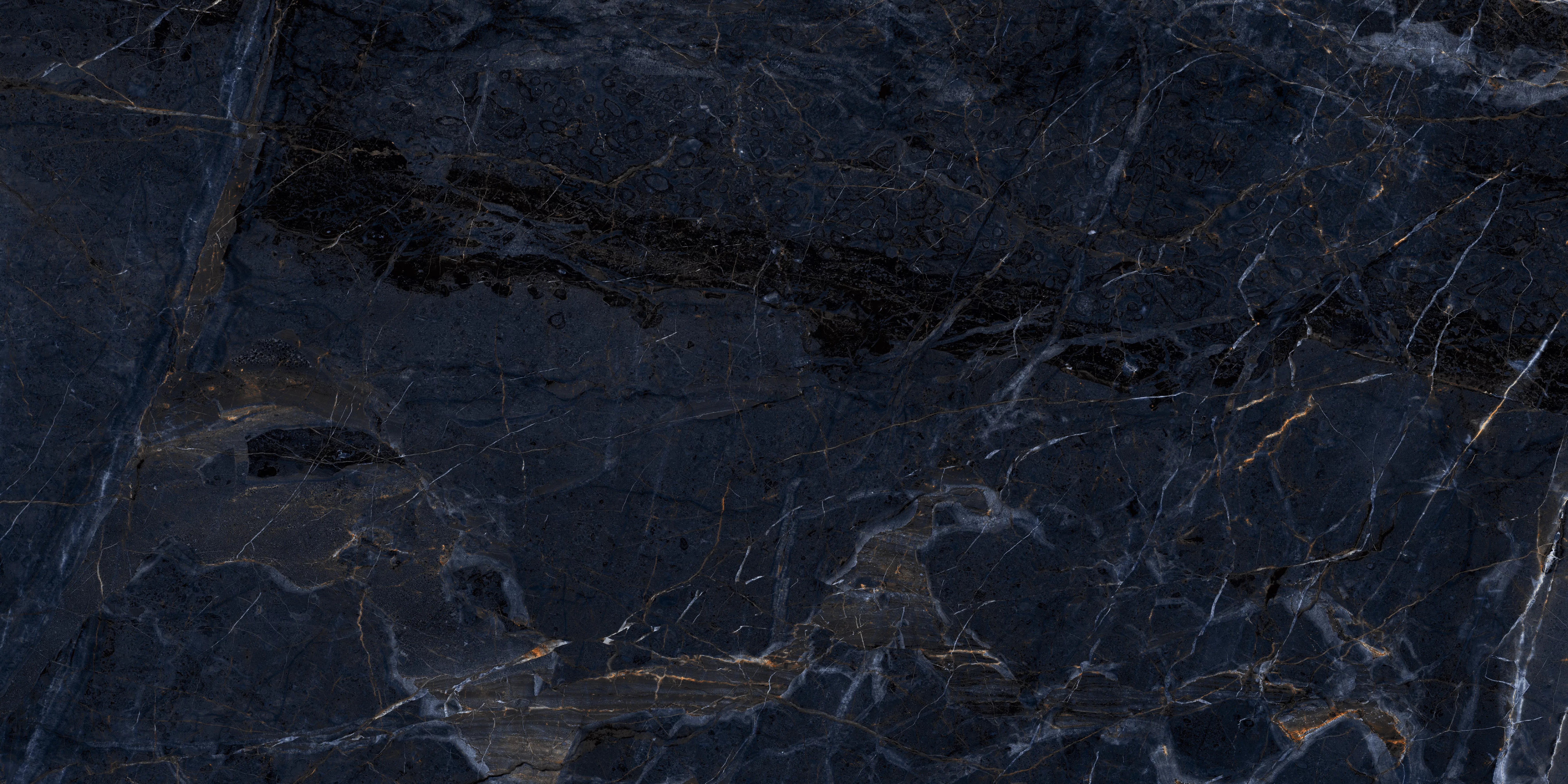 Gresie interior/exterior, portelanata, 60X120 cm, EMPORIUM BLUE HG , aspect piatra naturala, neagra, lucioasa, rectificata