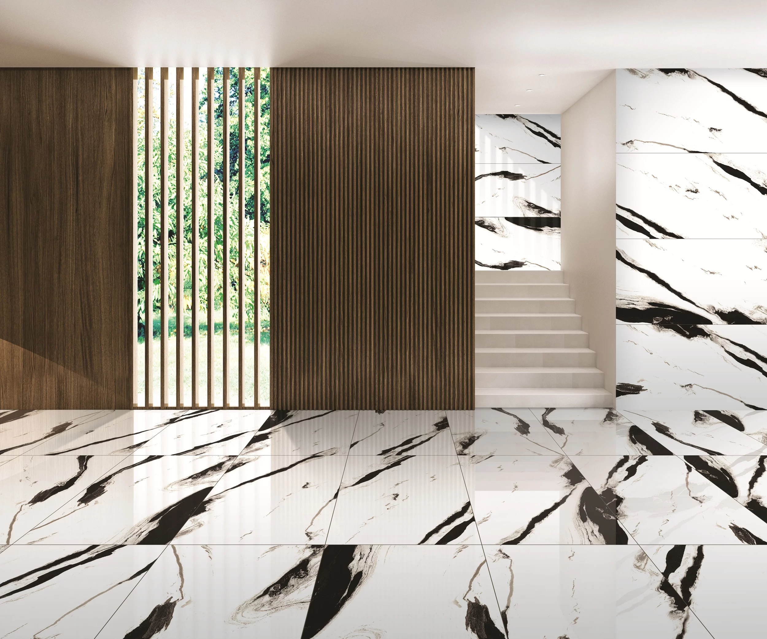 Inspirată de frumusețea marmurei Panda, această placă aduce lux și rafinament în orice spațiu interior.