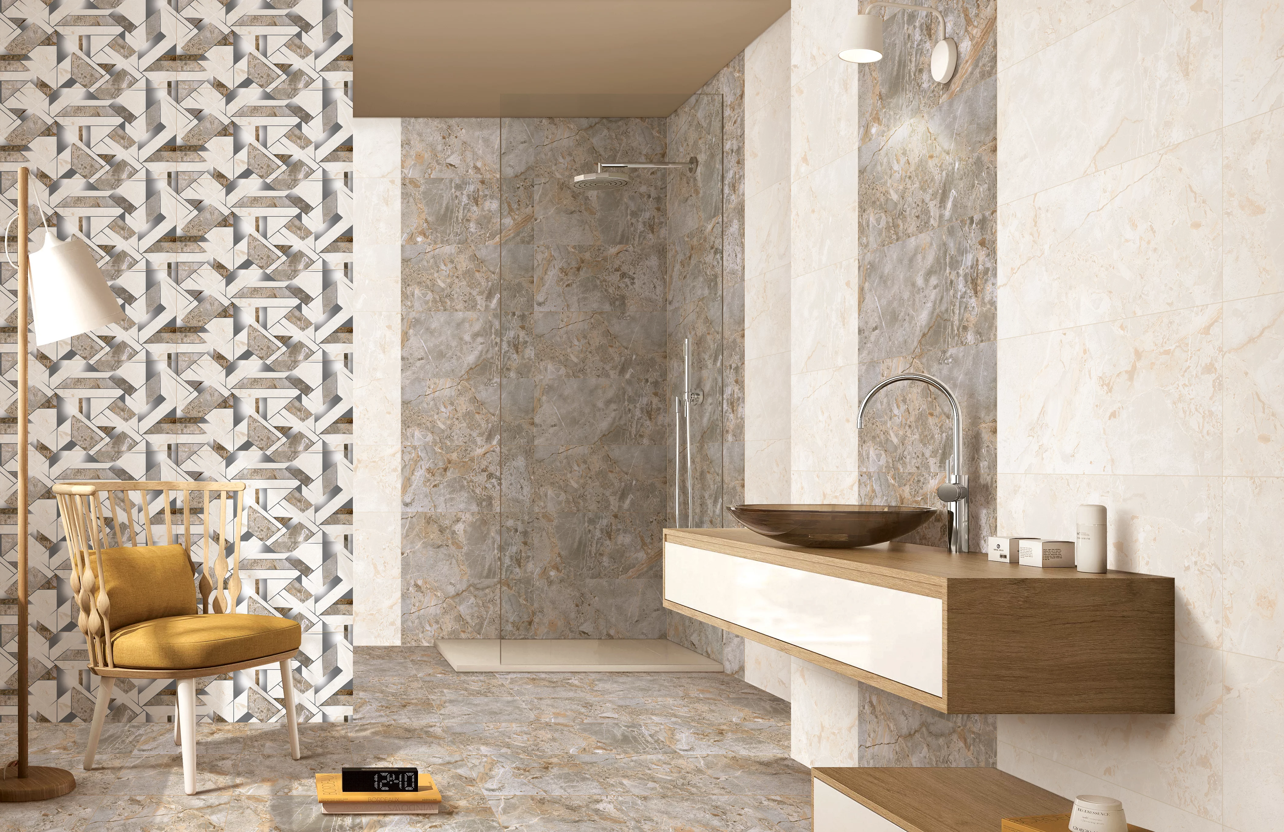 Ideală pentru placarea pereților în băi, bucătării, holuri sau livinguri, faianța Geometric Sand DK se potrivește în amenajări elegante, clasice sau moderne.
