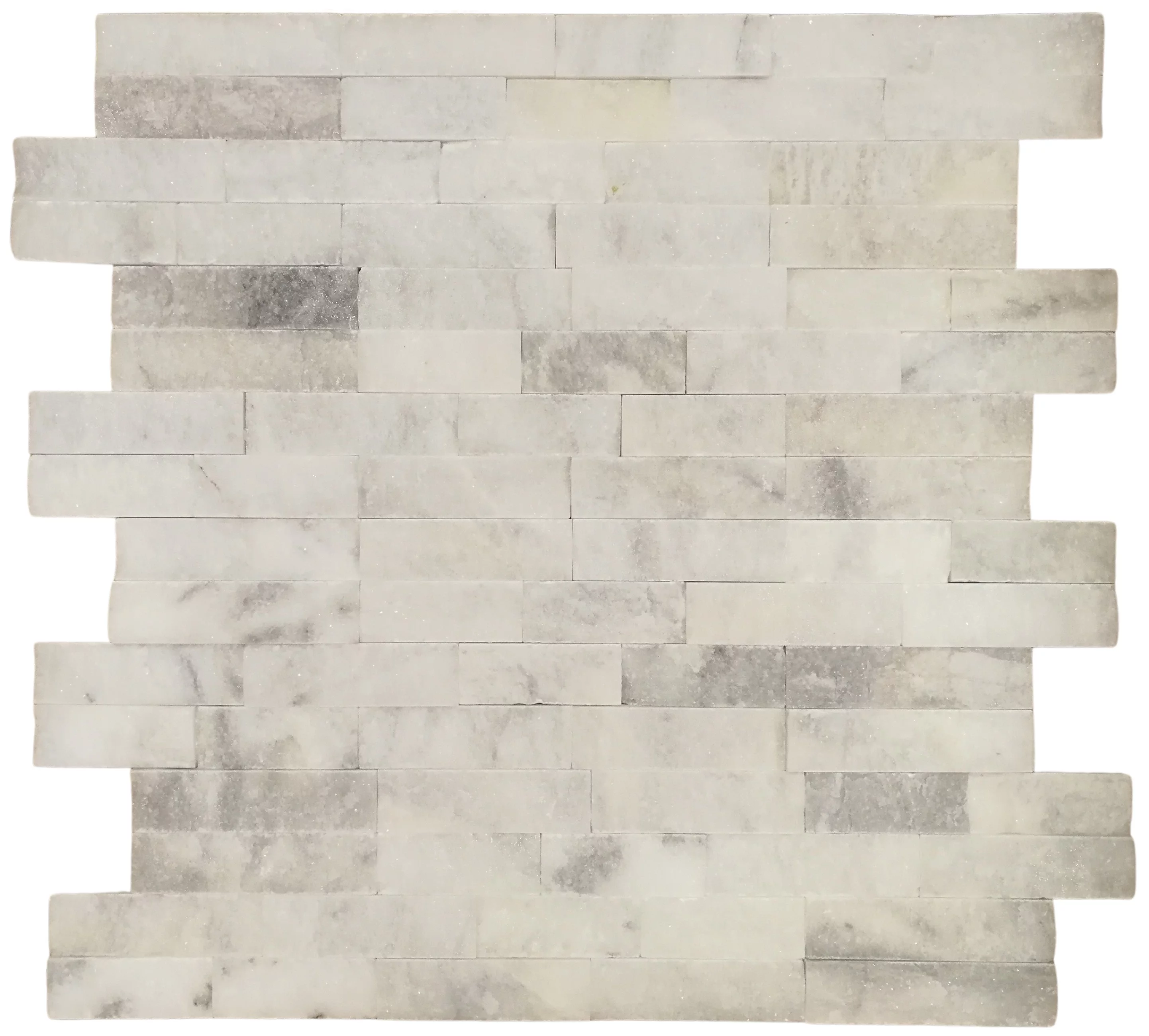 PANEL DIN MARMURA WHITE RIGID IN FORMA DE IMBINARE TIP PUZZLE, SUPRAFATA SPLIT FACE, GROSIME 1.5-1.8 CM IDEAL PENTRU PLACAREA PERETILOR INTERIORI SI EXTERORI, DIMENSIUNE BUCATI 3.8x10, 3.8x13, 3.8x15, 6 bucati/cutie