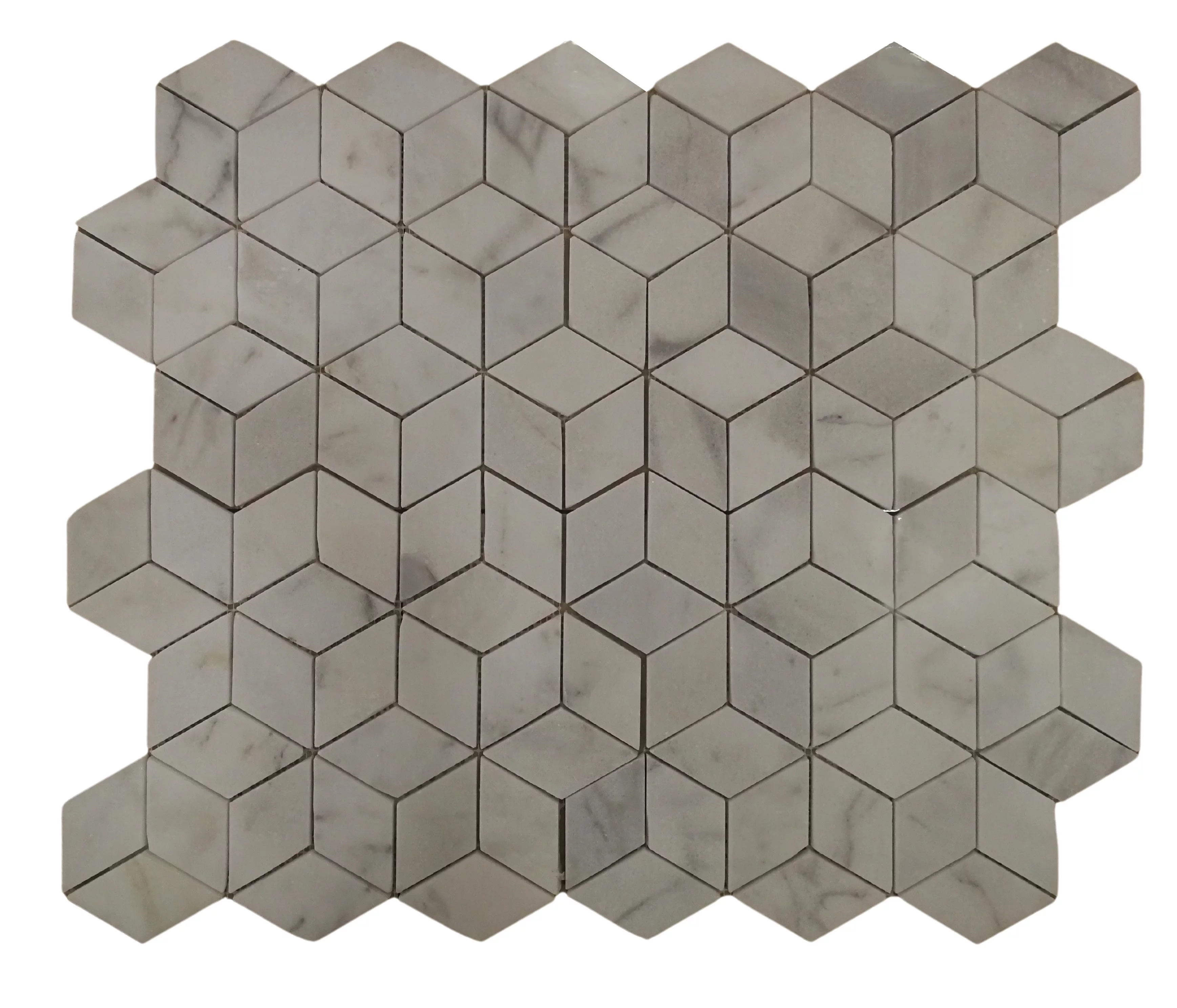 MOZAIC MARMURA DIAMOND WHITE - 30.5X26.6 cm, grosime 1 cm, alb, finisaj lucios, efect vizual tridimensional spectaculos, ideal pentru interioare rafinate.