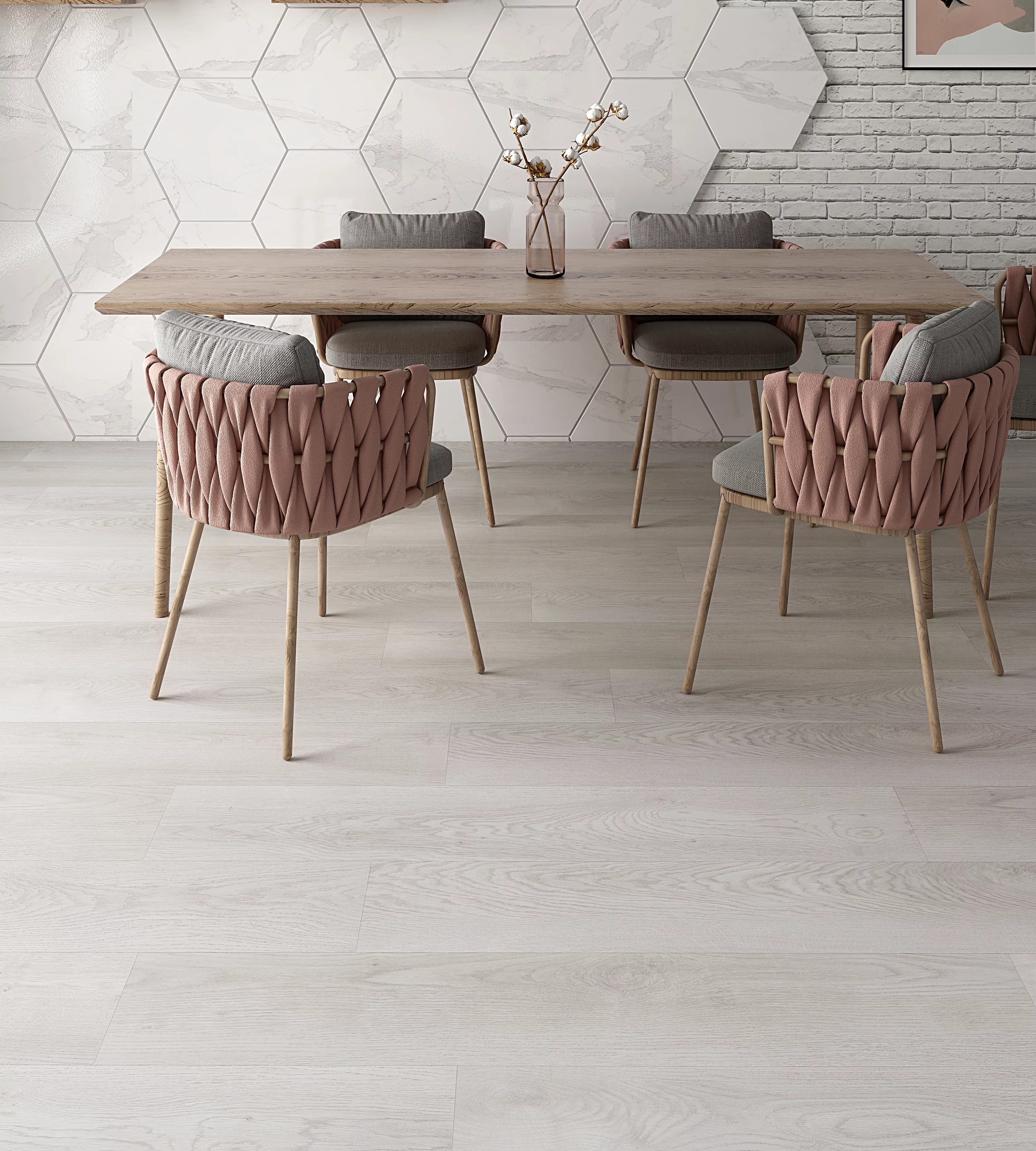 Datorită finisajului alb cu textură în relief, este ideal pentru amenajări moderne și luminoase.