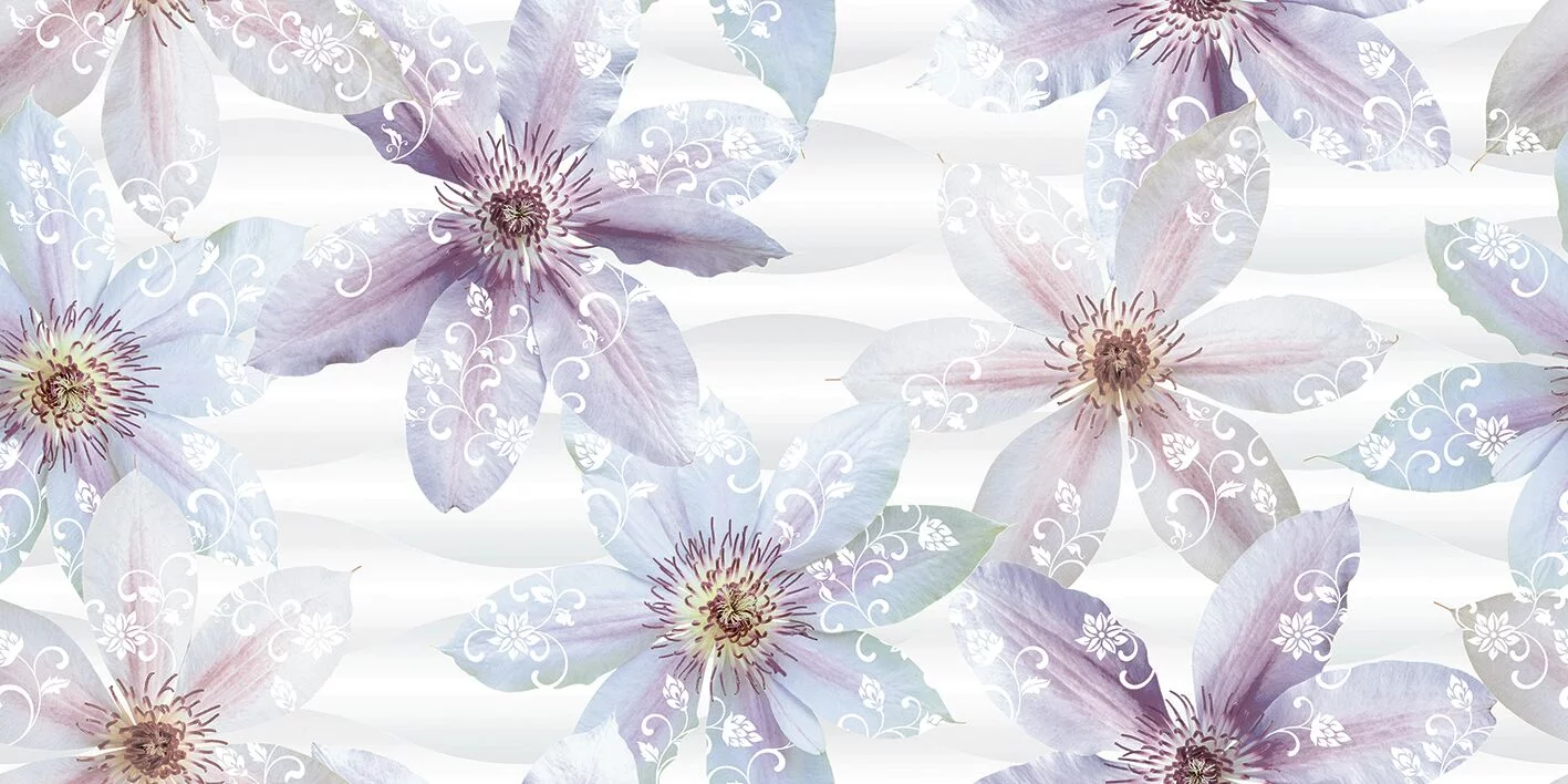FAIANTA CLOUDY BLANCO HL - 30X60 cm, ceramica glazurata, rectificata, imprimeu floral în nuanțe pastelate pe fundal alb lucios, ideală pentru accente de perete în spații interioare elegante.