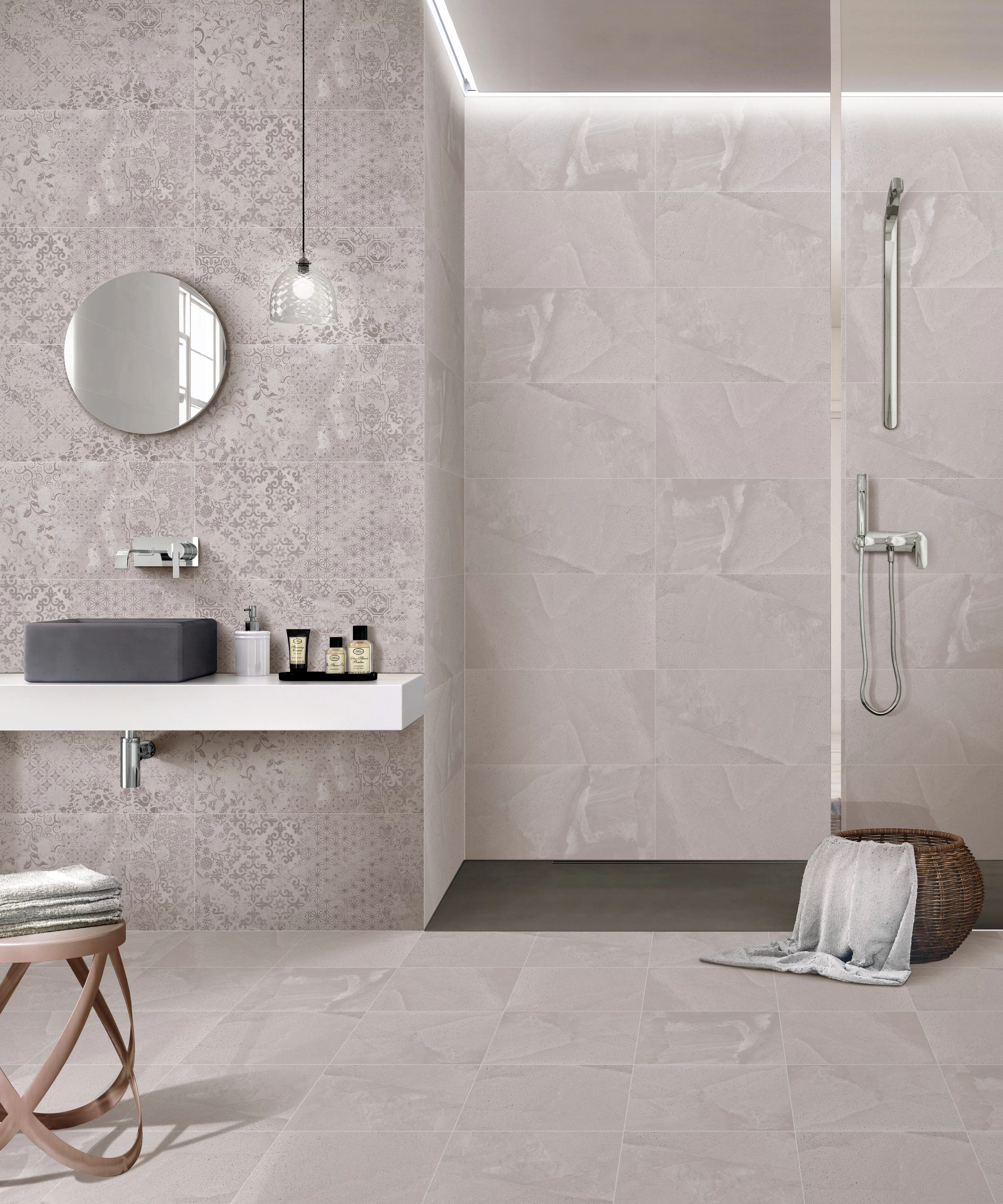 Tonurile de gri, inspirate de betonul urban, sunt subtile și variate, datorită celor 7 fețe grafice diferite care oferă un efect vizual natural și fluid.