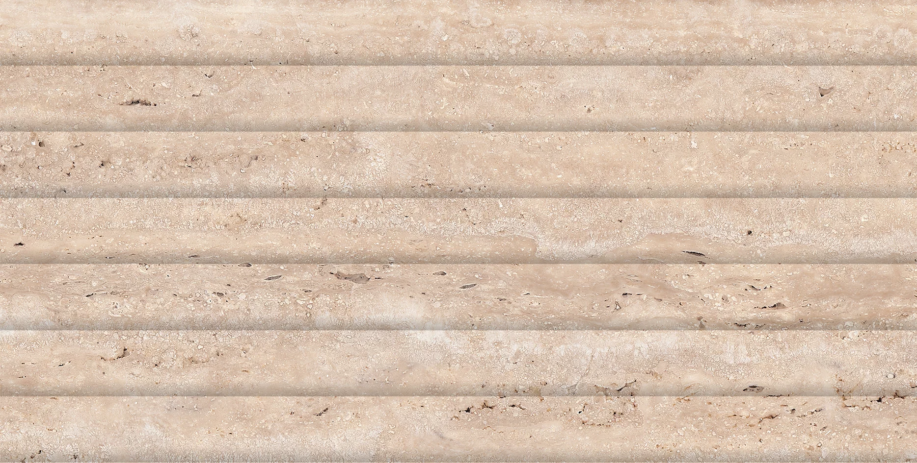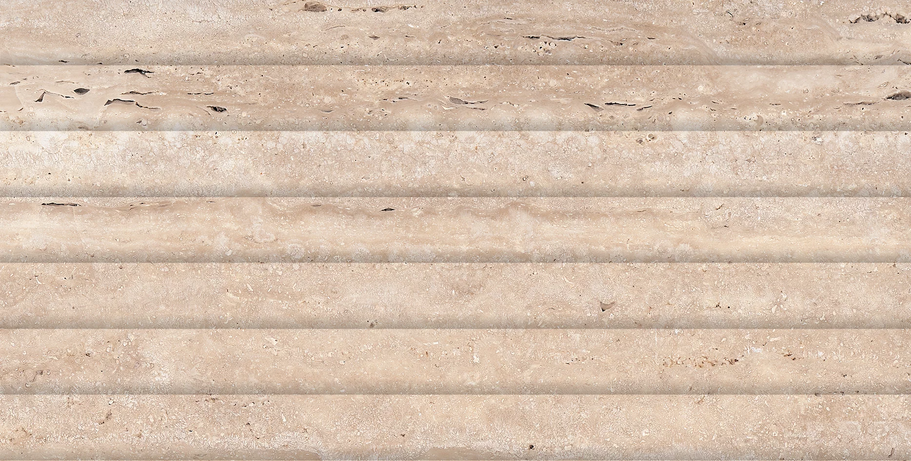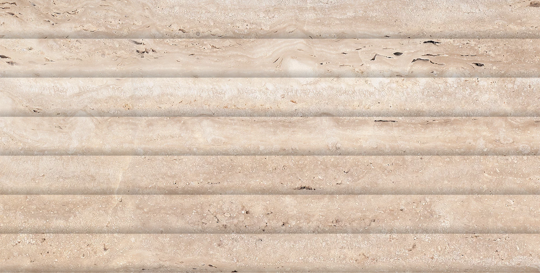FAIANTA TRAVERTINE NATURAL LINER LT - 30X60 cm, ceramica glazurata, rectificata, finisaj lucios, embosată, cu striații decorative liniare, aspect travertine natural bej, eleganță și textură naturală în designul interior.