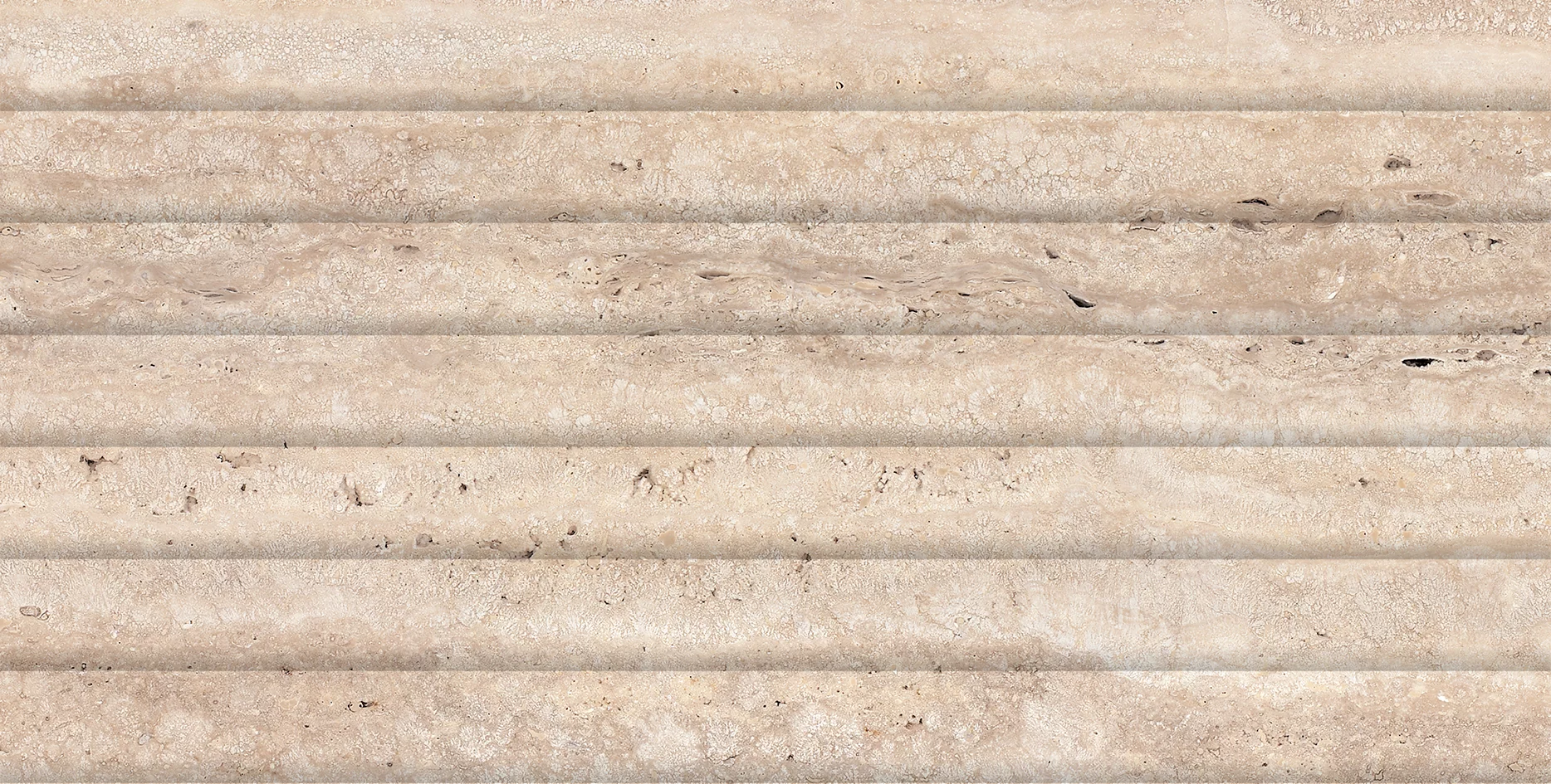TRAVERTINE NATURAL LINER LT este o faianță decorativă care combină naturalețea pietrei travertin cu o textură embosată, de tip liner, pentru a crea accente elegante și moderne în spațiile interioare.