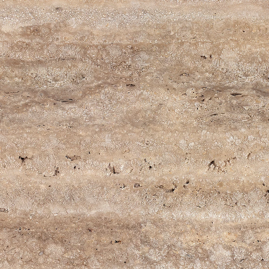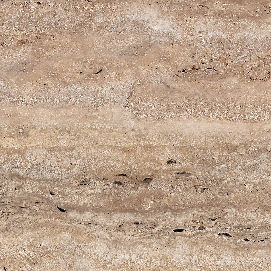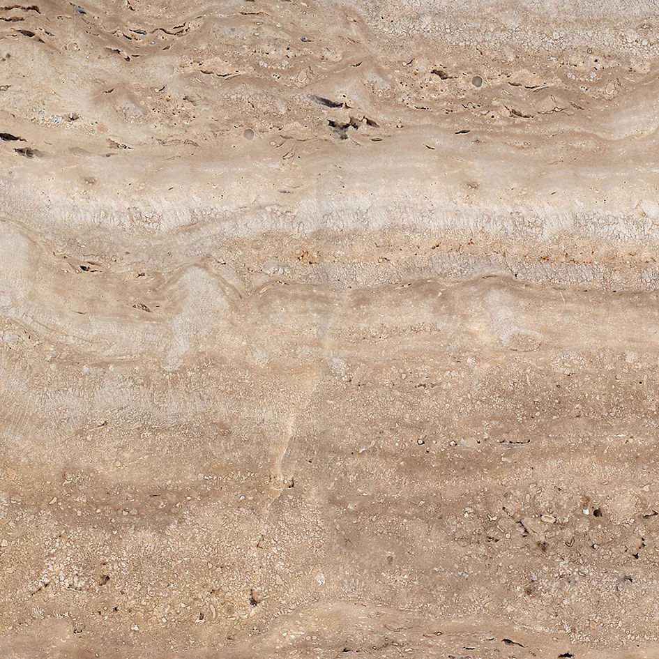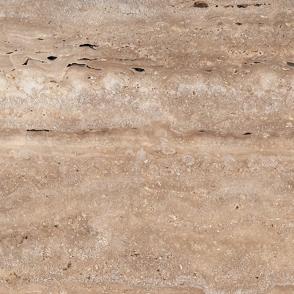 TRAVERTINE NATURAL DK FL este o gresie porțelanată glazurată cu aspect de travertin natural în nuanțe închise de bej-maro, ce redă fidel textura travertinului cu nervuri și imperfecțiuni naturale.