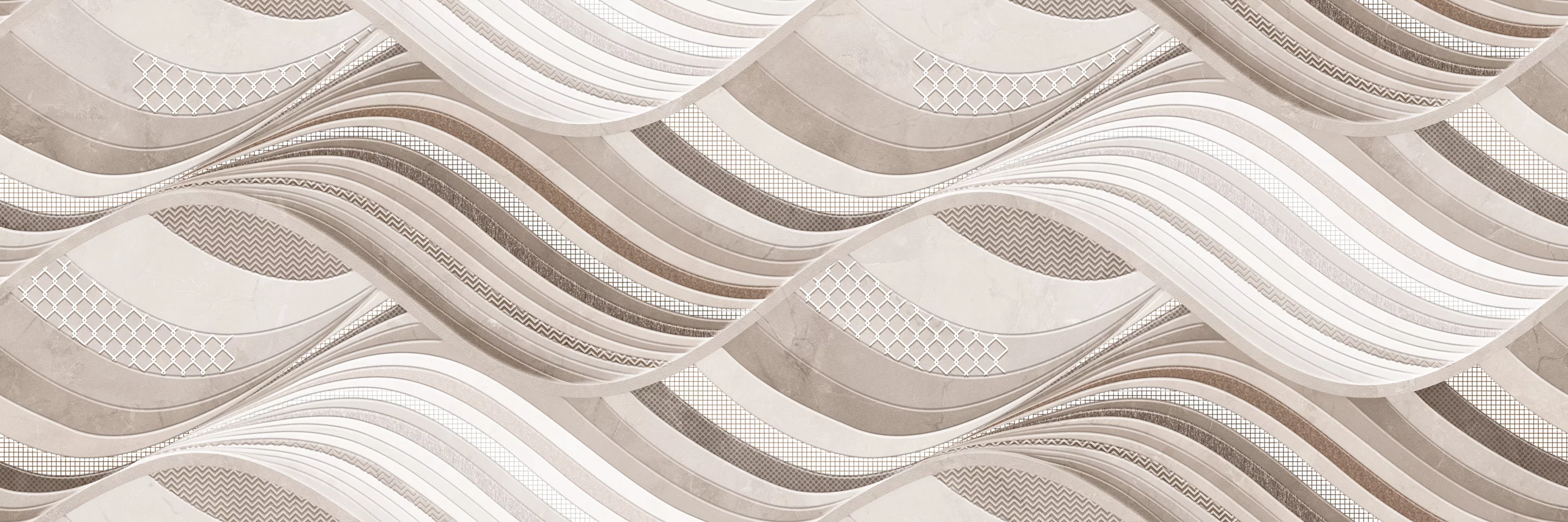 FAIANTA ROUBAIX PURL AC-12250 HL1 - 25X75 cm, ceramica glazurată, suprafata lucioasă, cu relief geometric, în nuanțe bej, crem și alb cald, ideală pentru accente elegante în băi și bucătării.