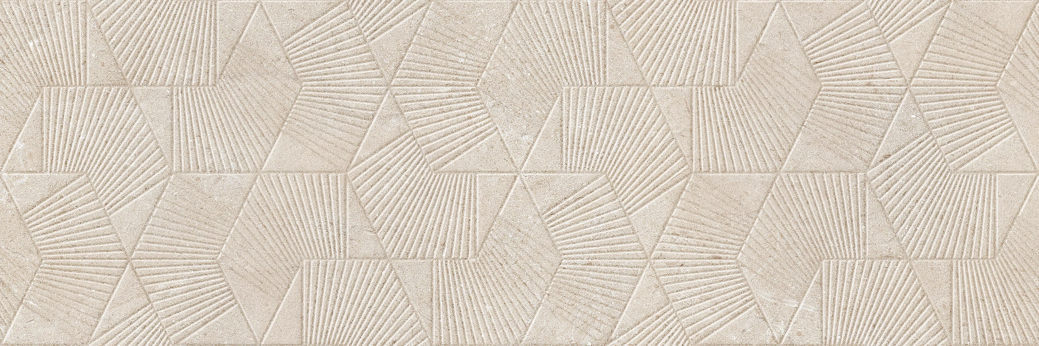 FAIANTA SOFT PIETRA EX-50385 HL6 - 25X75 cm, ceramica glazurată, mată, rectificată, în relief (efect punch), cu decor geometric stilizat în nuanțe bej naturale.