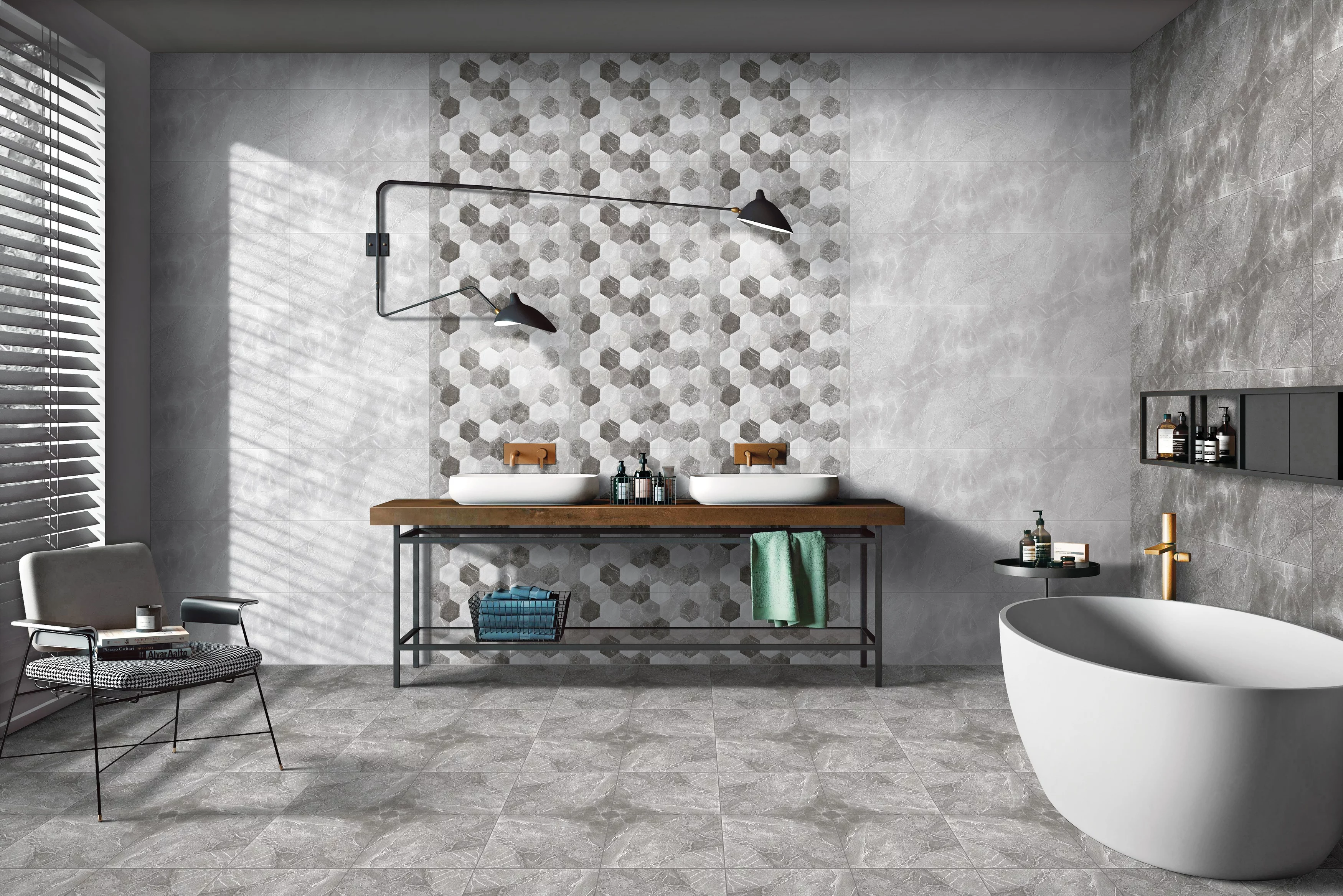 Se combină ușor cu gresii în nuanțe neutre sau cu decorațiuni sofisticate, pentru un efect vizual premium.