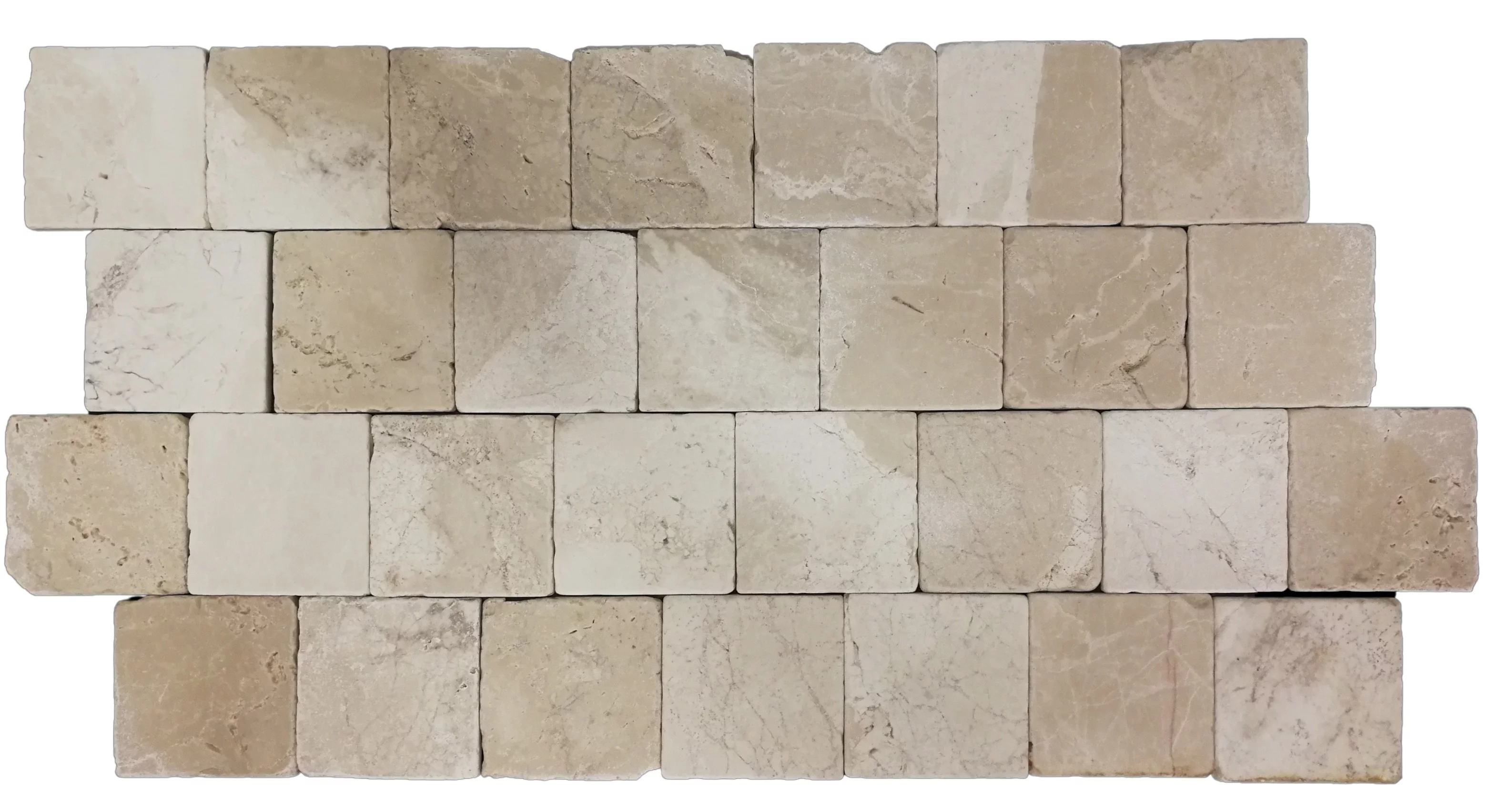 MARMURA ANATOLYA TUMBLED - 10X10X1 cm, aspect mat antichizat, nuanțe calde de bej, crem, fildeș și accente gri deschis, ideală pentru placări interioare și exterioare in stil natural și rustic.
