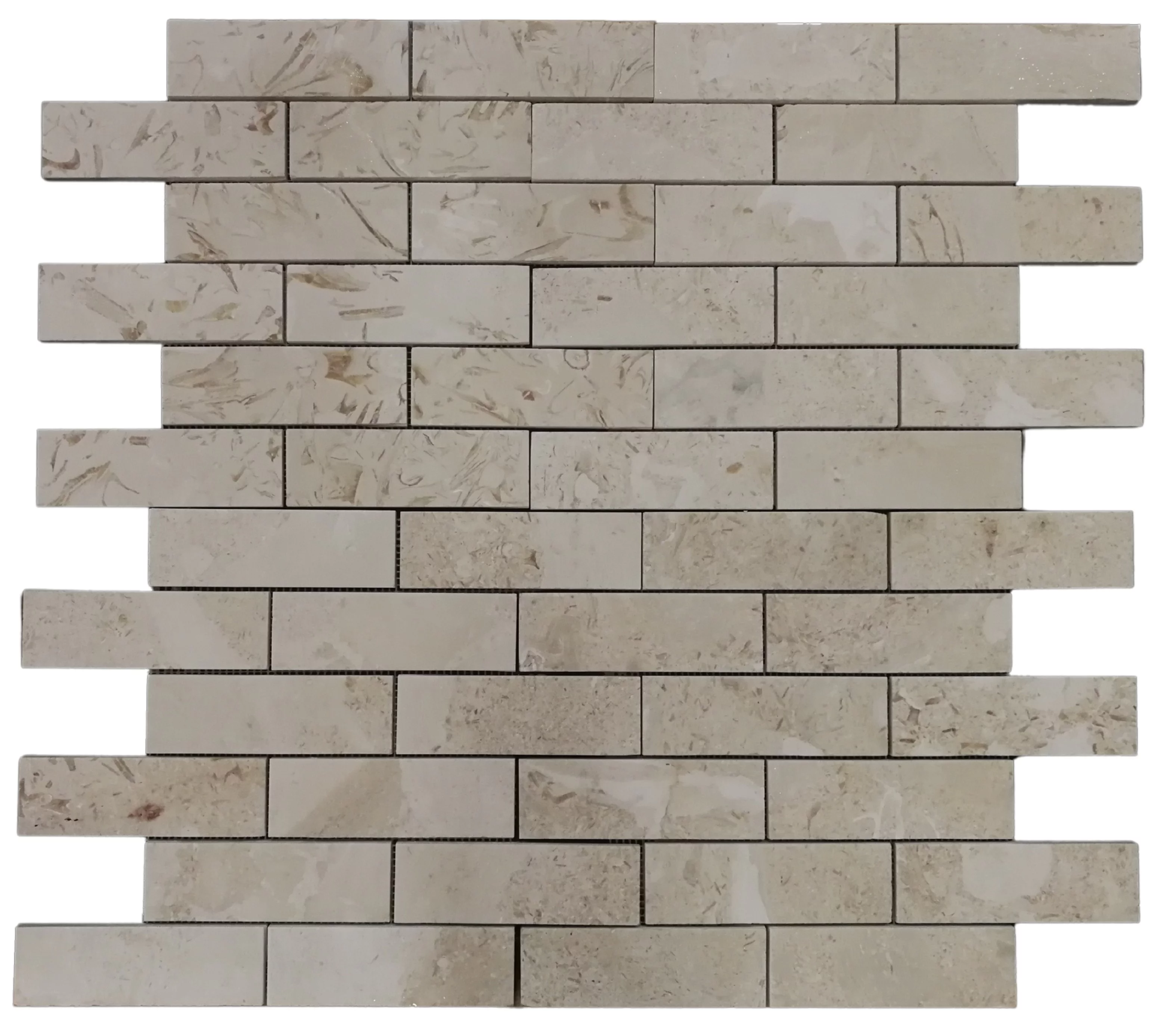 MOZAIC DIN LIMESTONE PE PLASA, ARE IN COMPONENTA SEDIMENTE DE SCOICI SI ALTE RESTURI MARINE GROSIME 1 CM, IDEAL SI PENTRU PLACARI EXTERIOARE