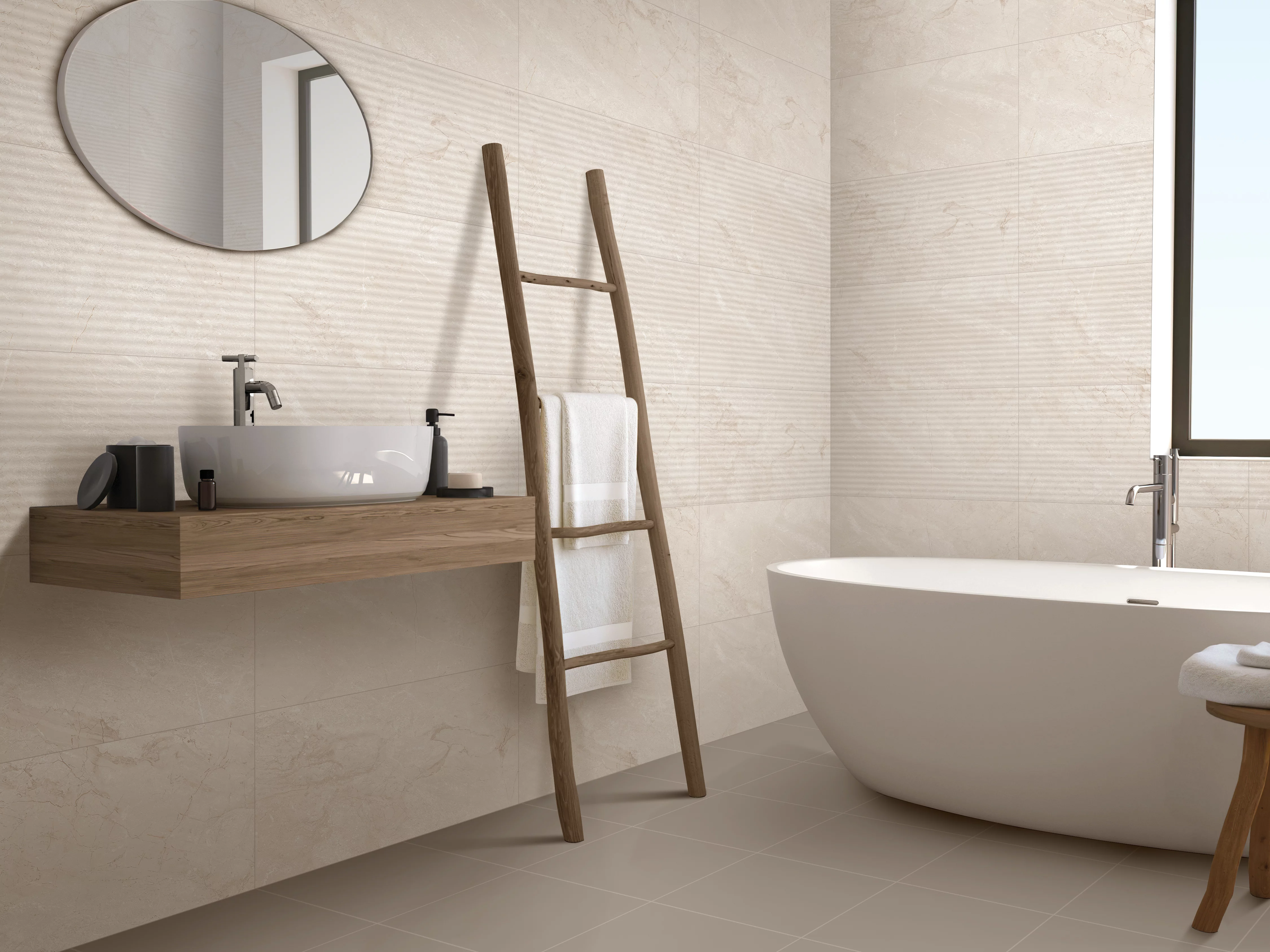 Faianța BIOLA HL1 32319 aduce un plus de dinamism și eleganță spațiilor interioare, prin textura sa în relief de tip „wave”.