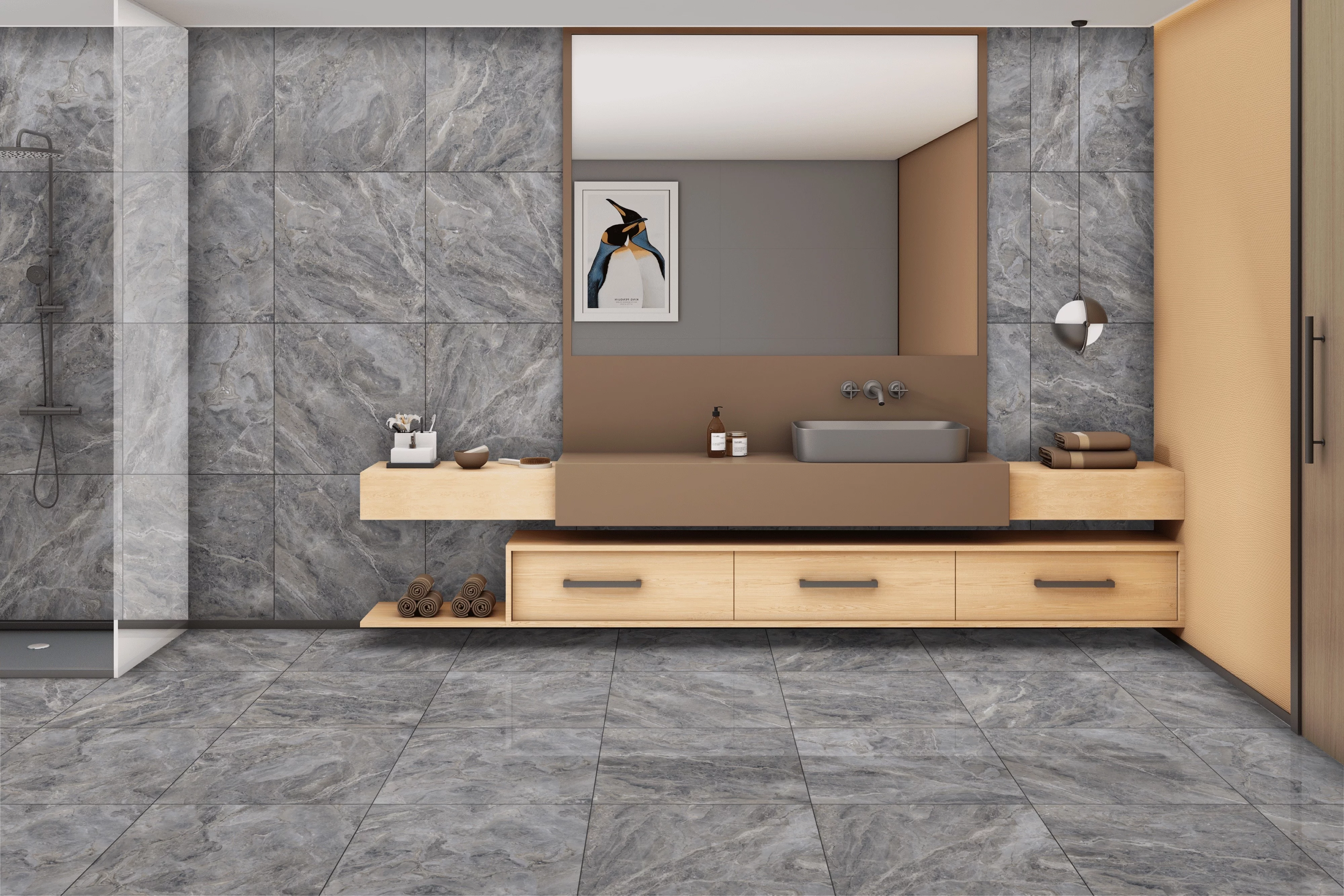 PORTELANATA, GLAZURATA, RECTIFICATA, INTERIOR/EXTERIOR, FINISAJ LUCIOS, GRI CU NEGRU RANDOM 12, PEI IV, ADERENTA NORMALA, RATA DE ABSORBTIE A APEI SUB 0.5%, COMPATIBILA CU SISTEME DE INCALZIRE IN PARDOSEALA