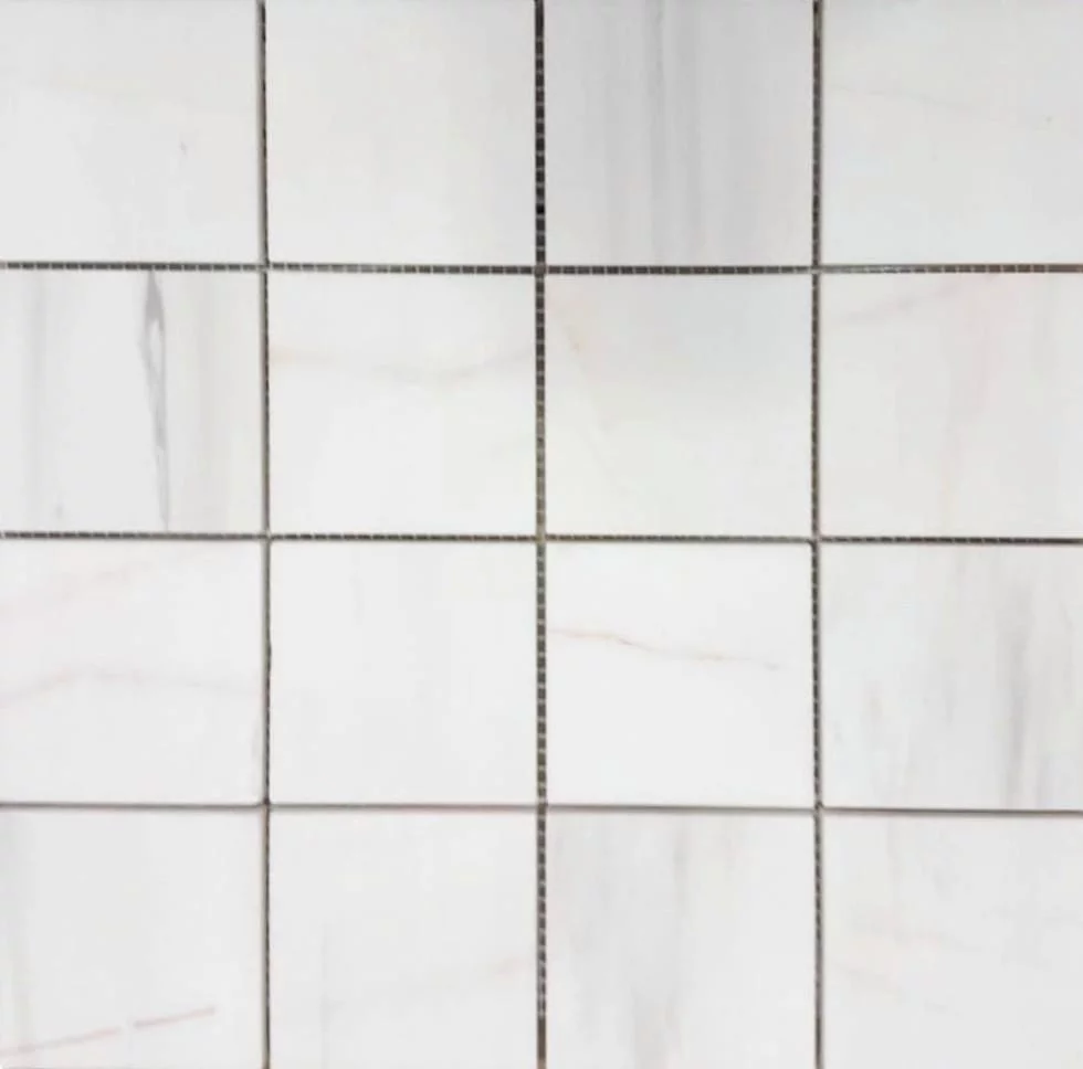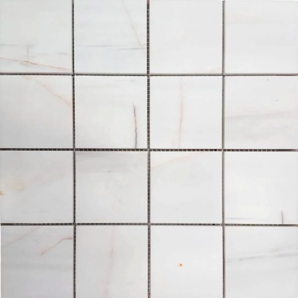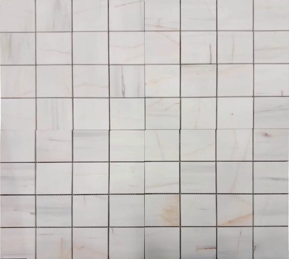 MOZAIC DIN DOLOMIT SQUARE - 30.5X30.5 cm, culoare albă cu vene discrete bej, gri deschis sau roz pal, finisaj șlefuit, rafinament minimalist pentru spații moderne.