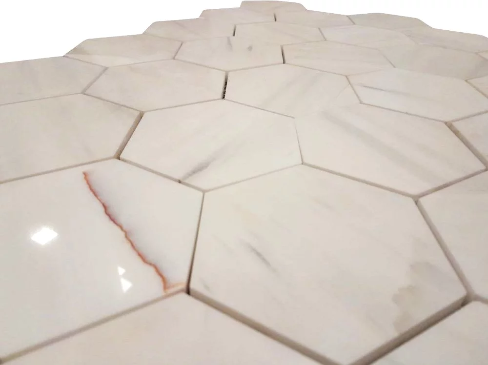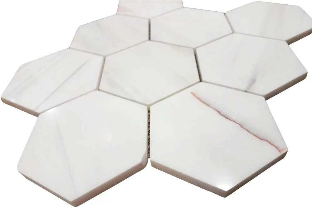 MOZAIC DIN DOLOMIT HEXAGON îmbină rafinamentul pietrei naturale cu un design contemporan de tip fagure (hexagon), adăugând un efect vizual captivant oricărui spațiu interior.