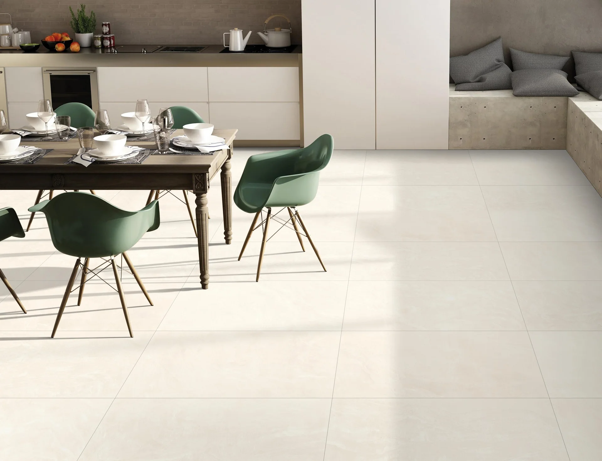 Rectificată pentru un montaj cu rosturi minime, această placă este ideală pentru pardoseli, pereți, băi, holuri, livinguri sau spații comerciale.