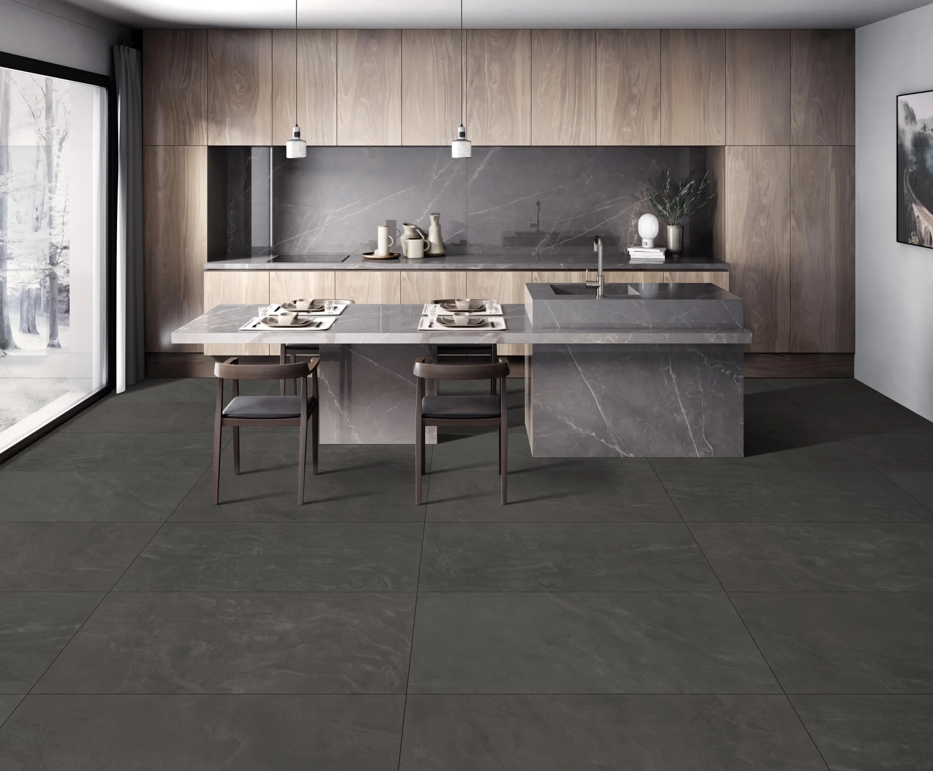 GRESIE DIESEL KOHLE FB - 60X120 cm, portelanata, full body, rectificata, finisaj mat negru intens, ideală pentru placări moderne, interior/exterior, trafic intens.
