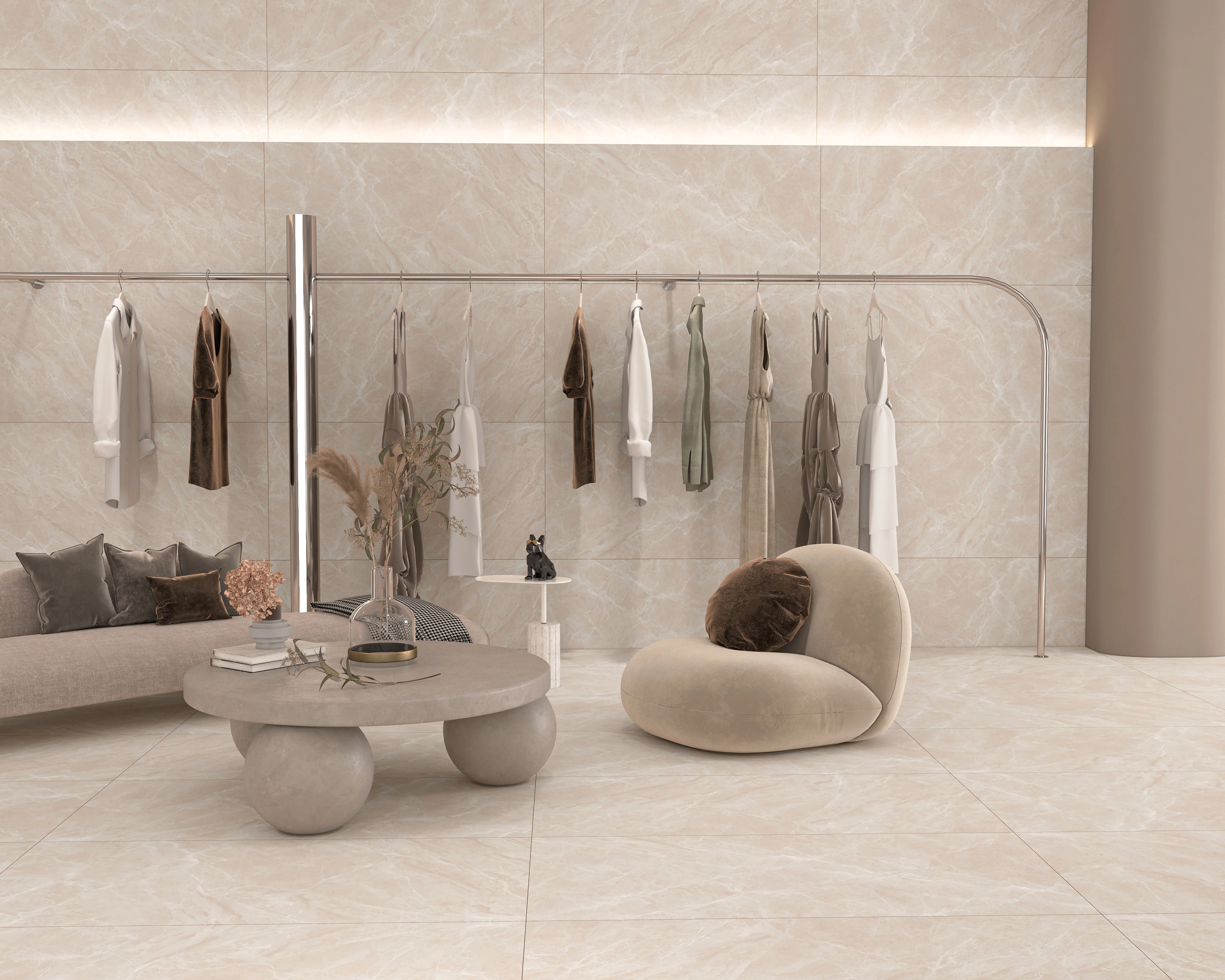PORTELANATA, GLAZURATA, RECTIFICATA, INTERIOR/EXTERIOR, FINISAJ MAT, BEJ ADERENTA NORMALA, RANDOM 4, PEI IV, RATA DE ABSORBTIE A APEI SUB 0.5%, COMPATIBILA CU SISTEME DE INCALZIRE IN PARDOSEALA, RECOMANDATA PENTRU PLACARE PARDOSEALA SI PERETI