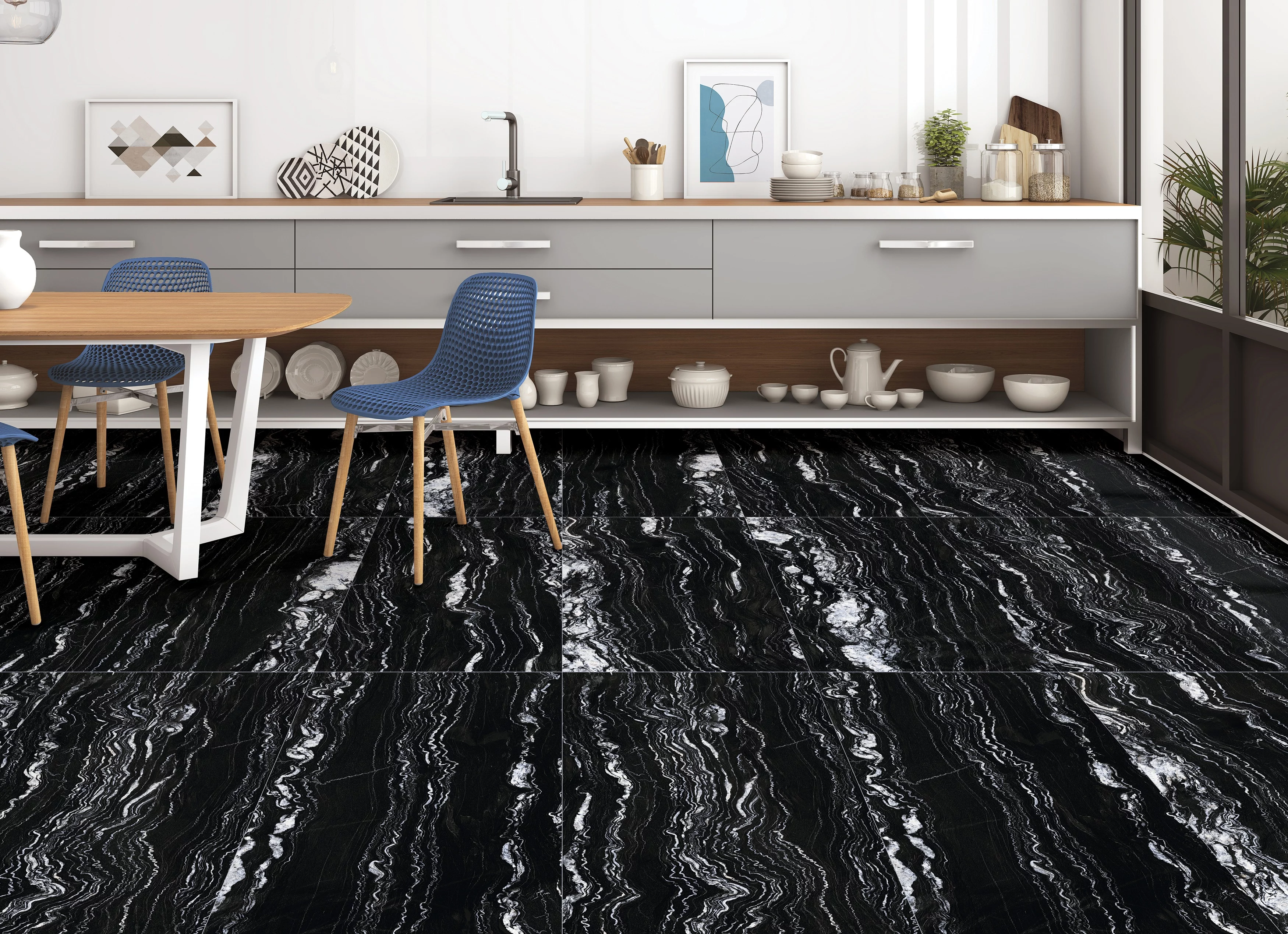 Plăcile mari și rectificate permit un montaj cu rosturi minime, pentru un aspect continuu și elegant.