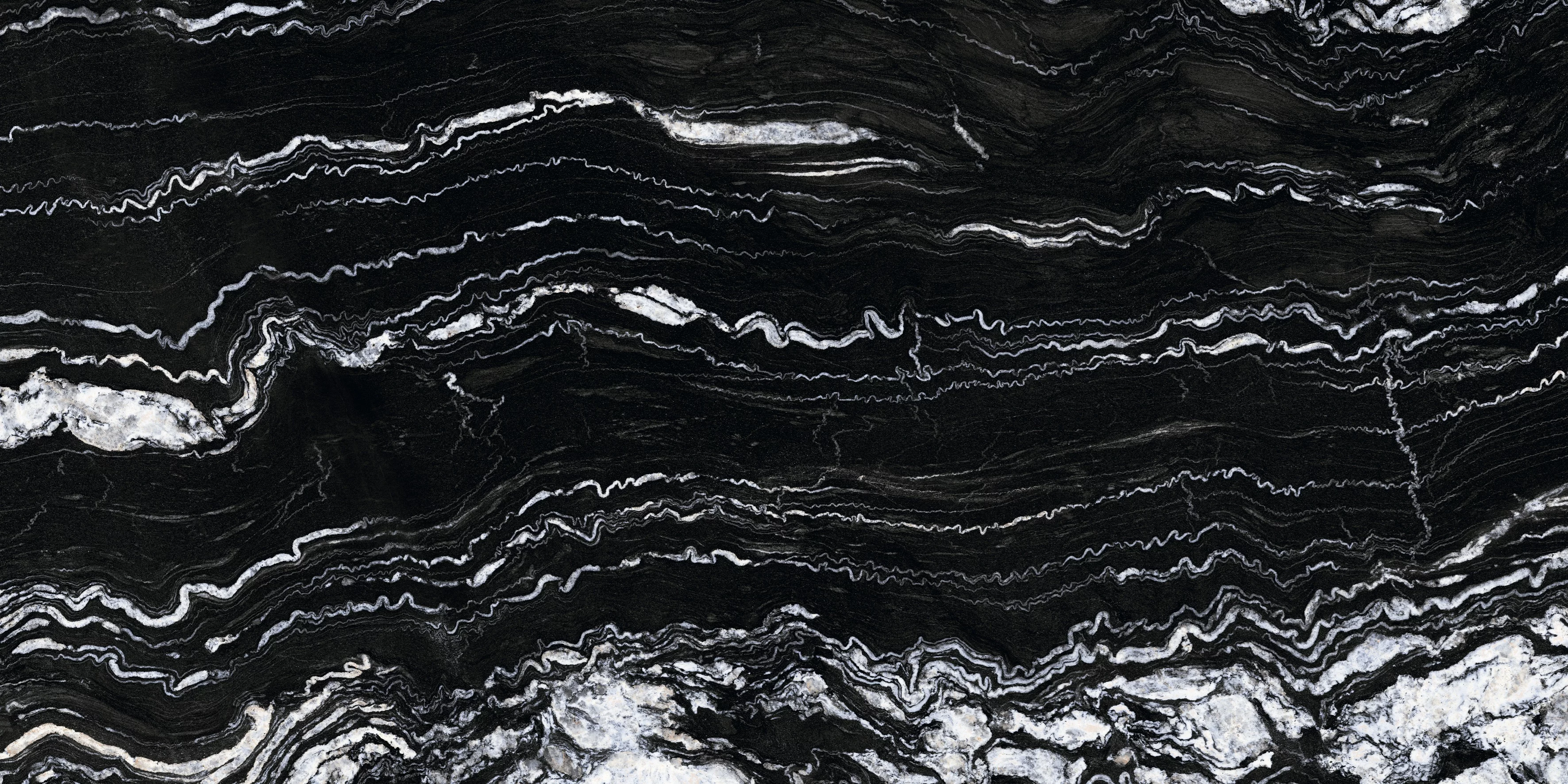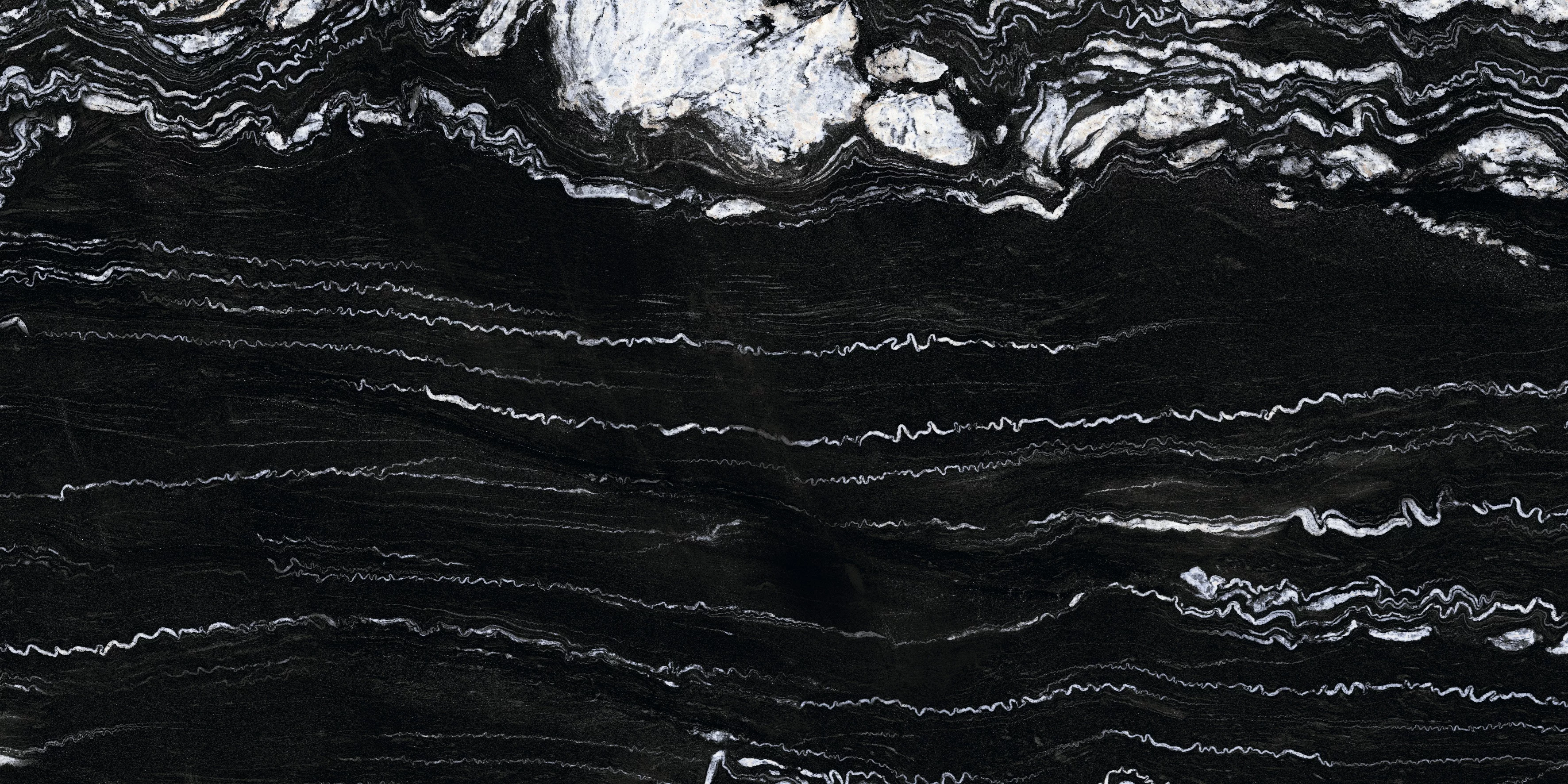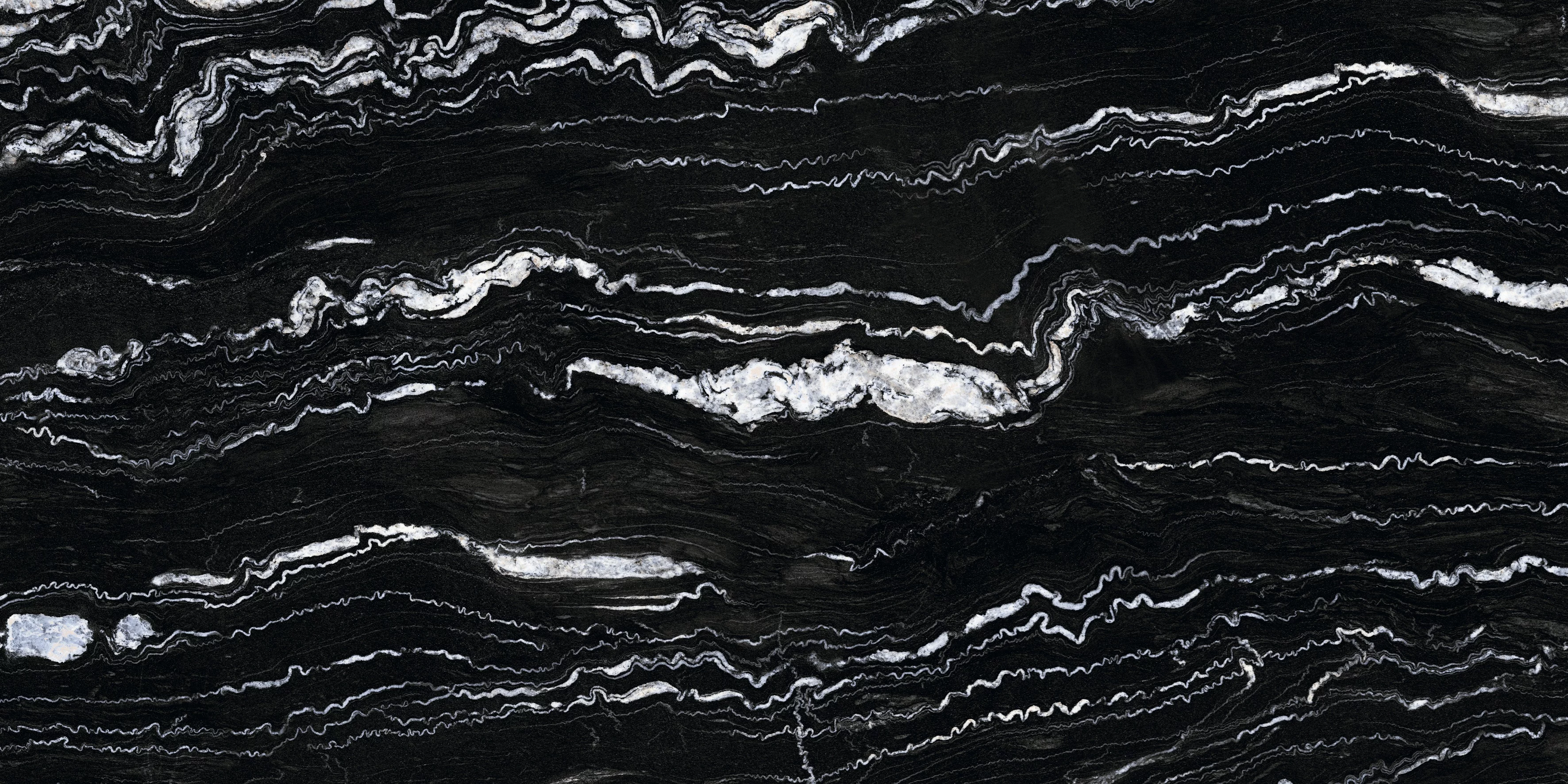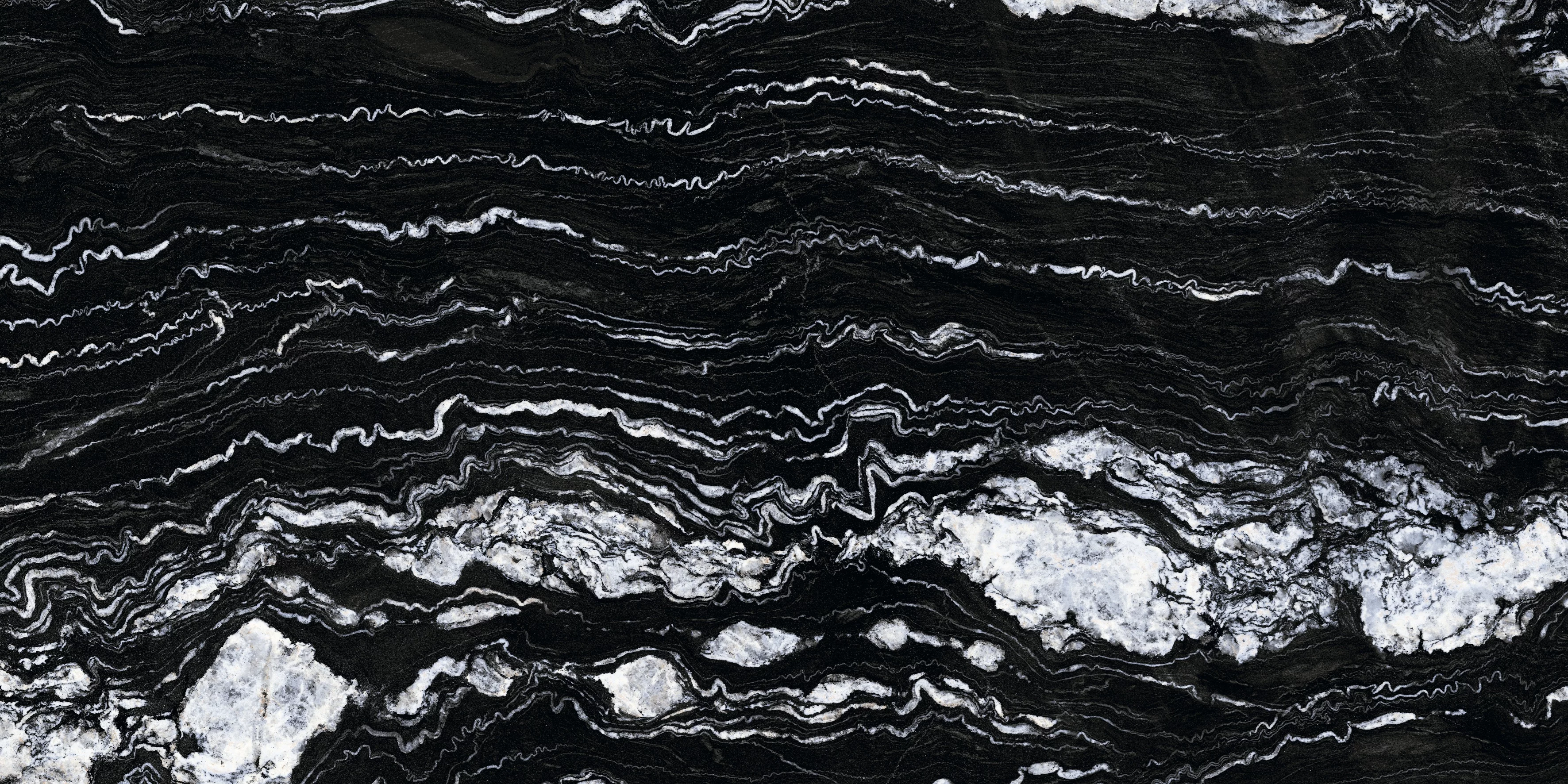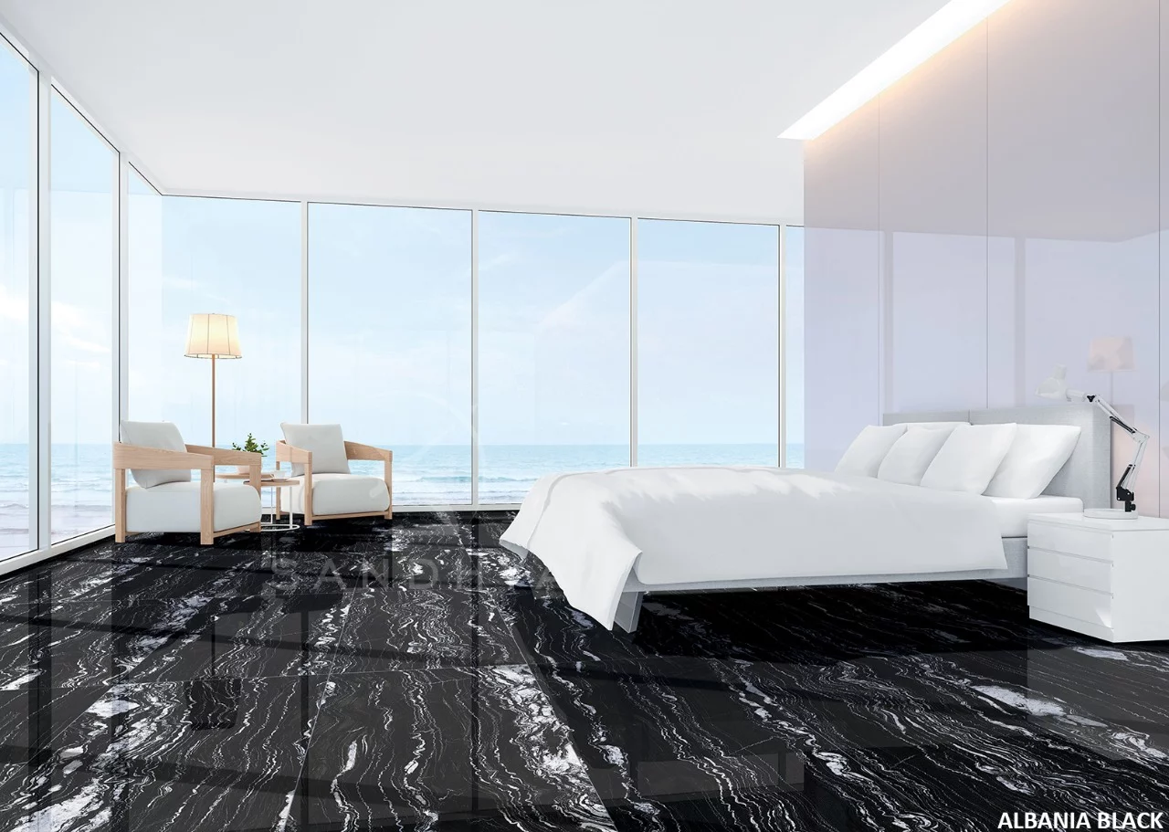 Gresia ALBANIA BLACK se remarcă prin contrastul spectaculos dintre fundalul negru intens și venele albe ondulate, care creează un efect vizual dramatic și luxos.