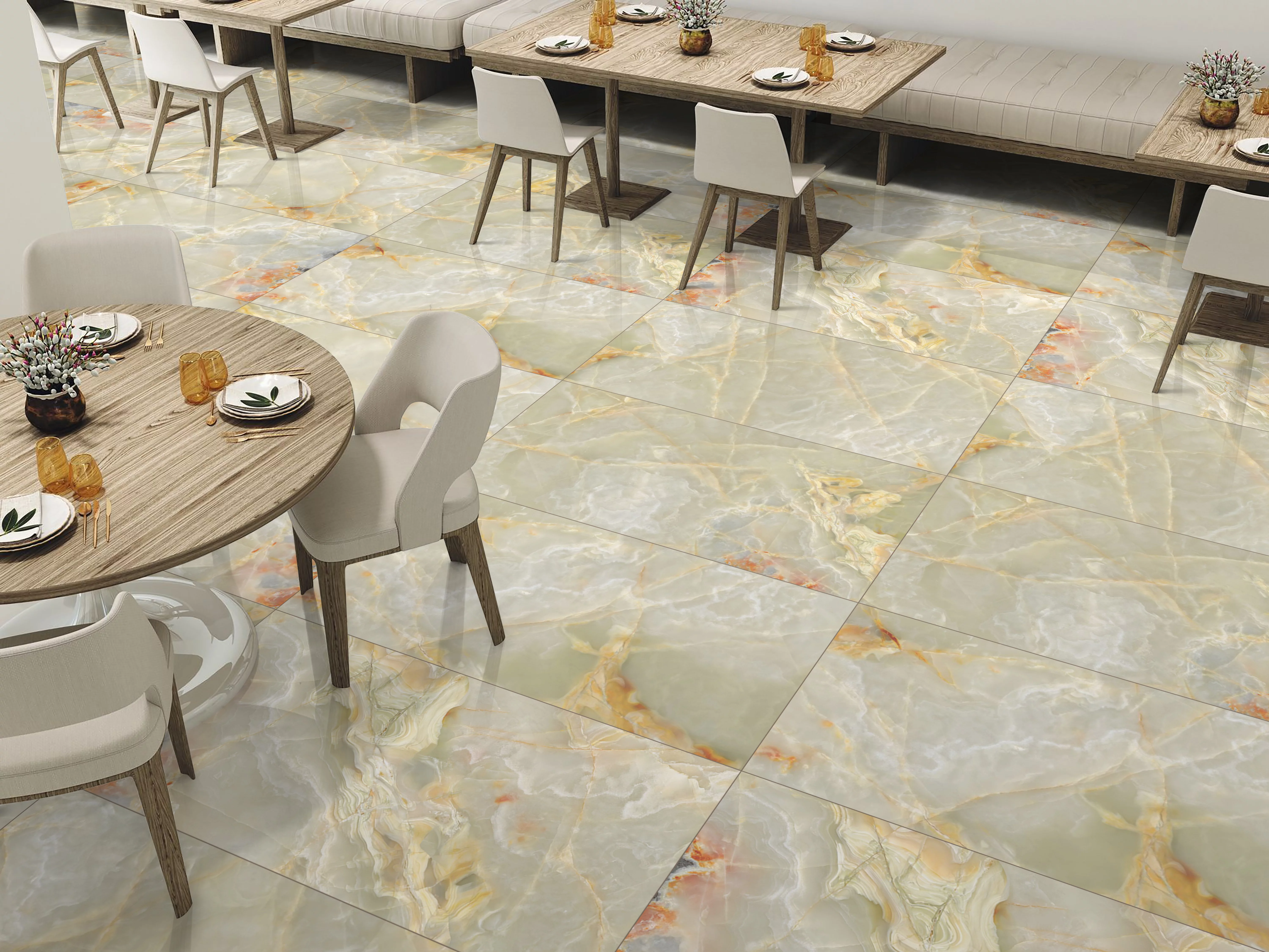 Gresia BLUETTE ONYX NATURAL surprinde frumusețea translucidă a onixului, cu tonuri calde de crem și accente aurii ce conferă un aer luxos și sofisticat.