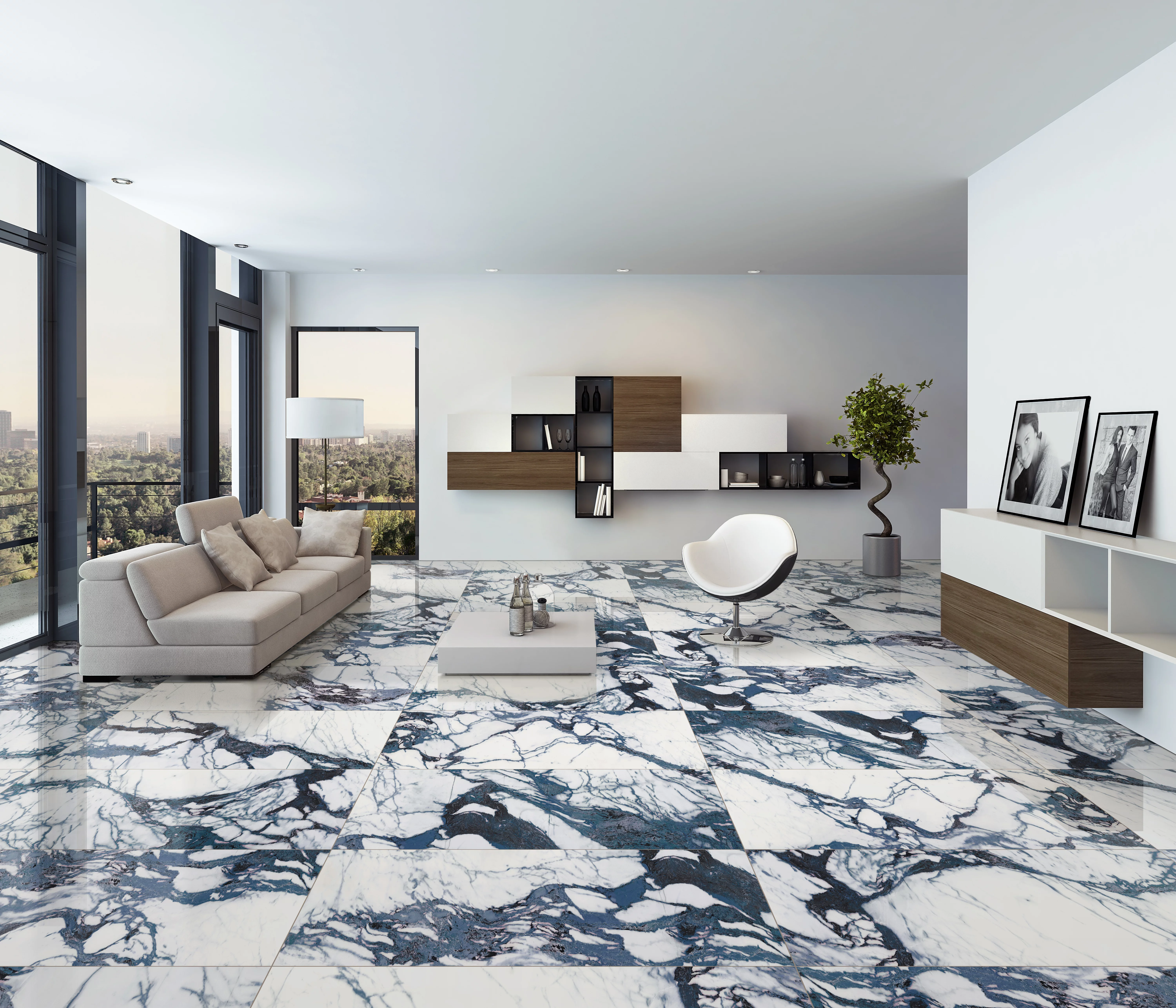 Gresia VN SOLARIS BLUE impresionează prin contrastul unic dintre fundalul alb luminos și venele albastre-gri dramatice, inspirate din frumusețea marmurei rare.