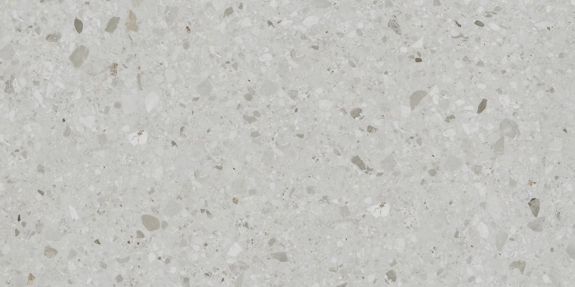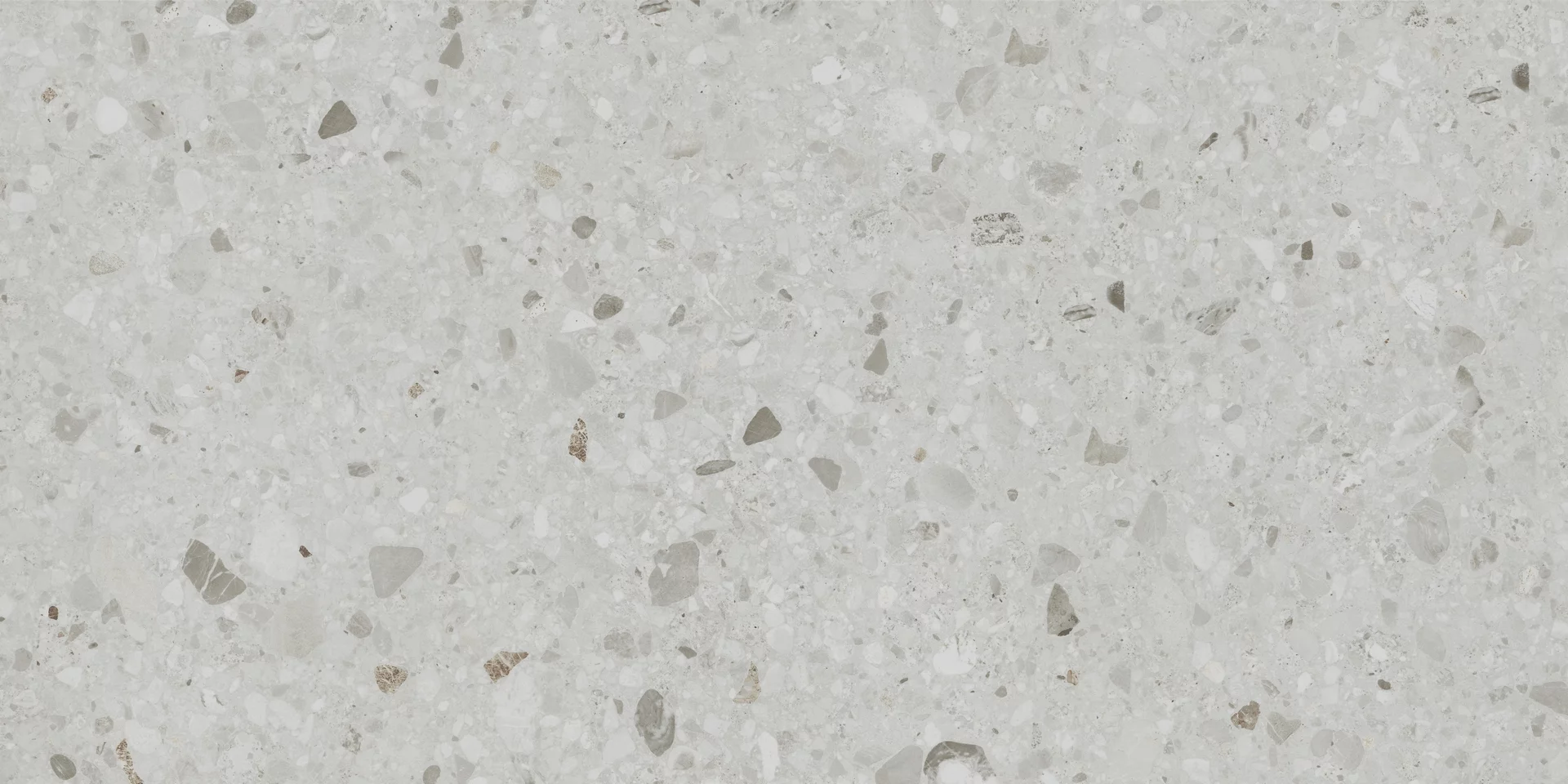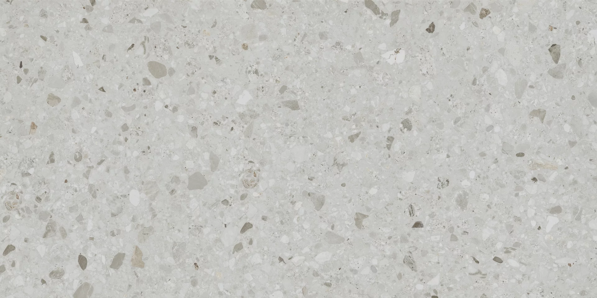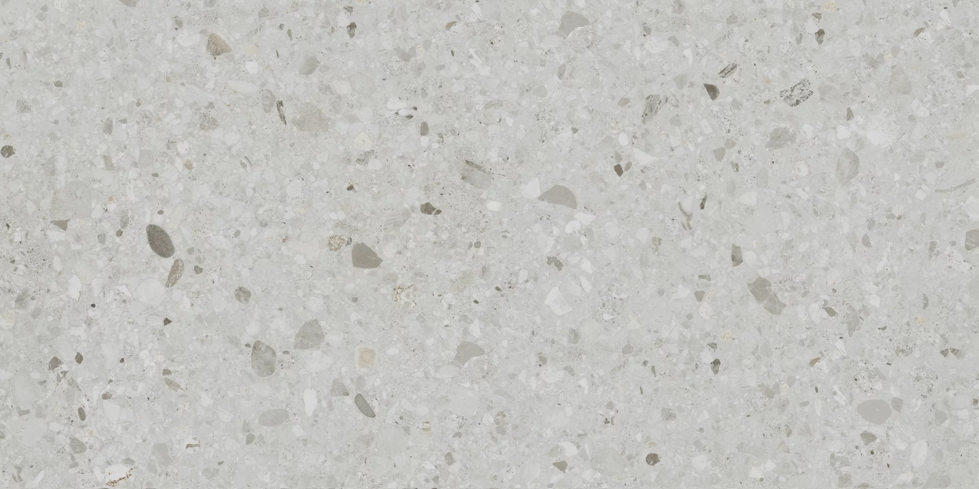 Gresia CEPPO DI GREY inspirată din eleganța terrazzo-ului clasic italian, combină tonuri de gri deschis și mediu cu inserții naturale care redau fidel aspectul pietrei măcinate.