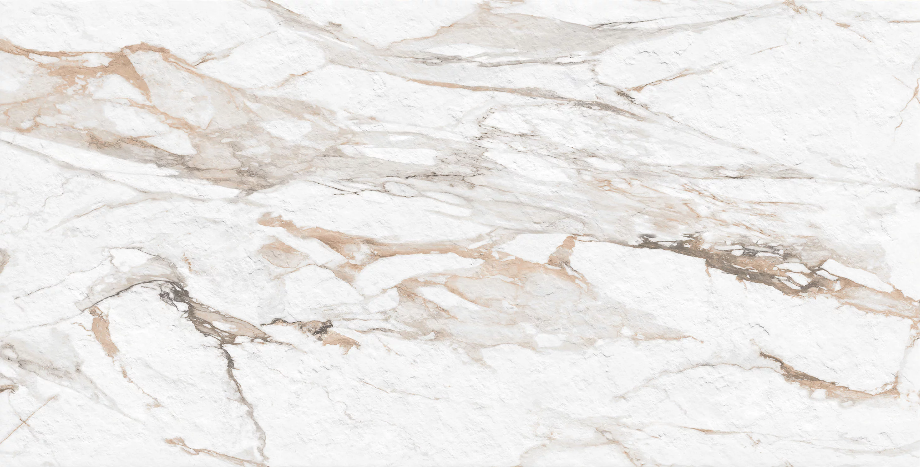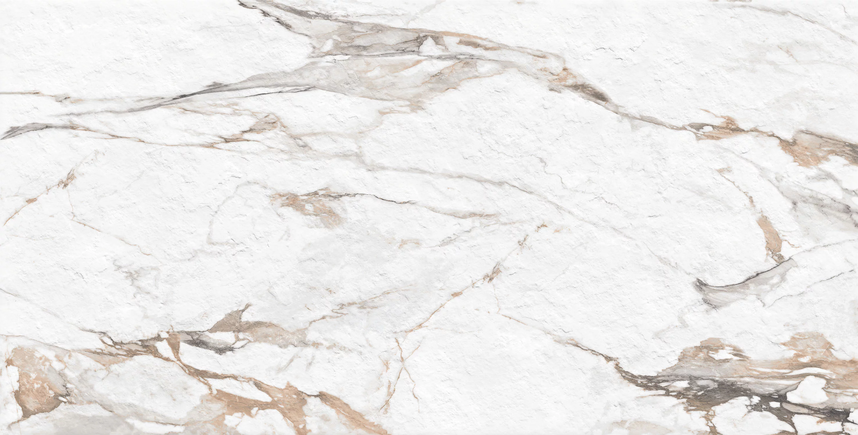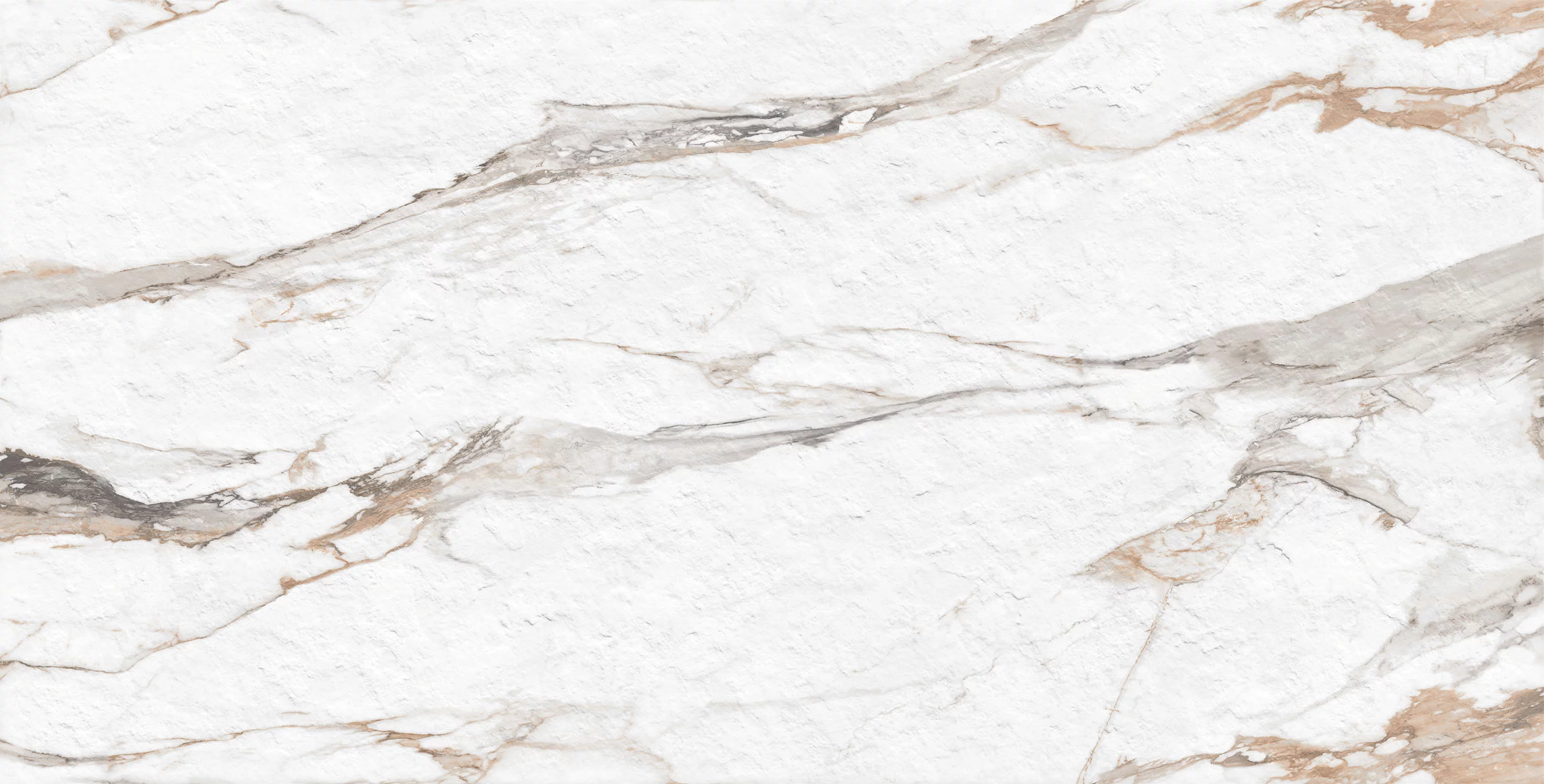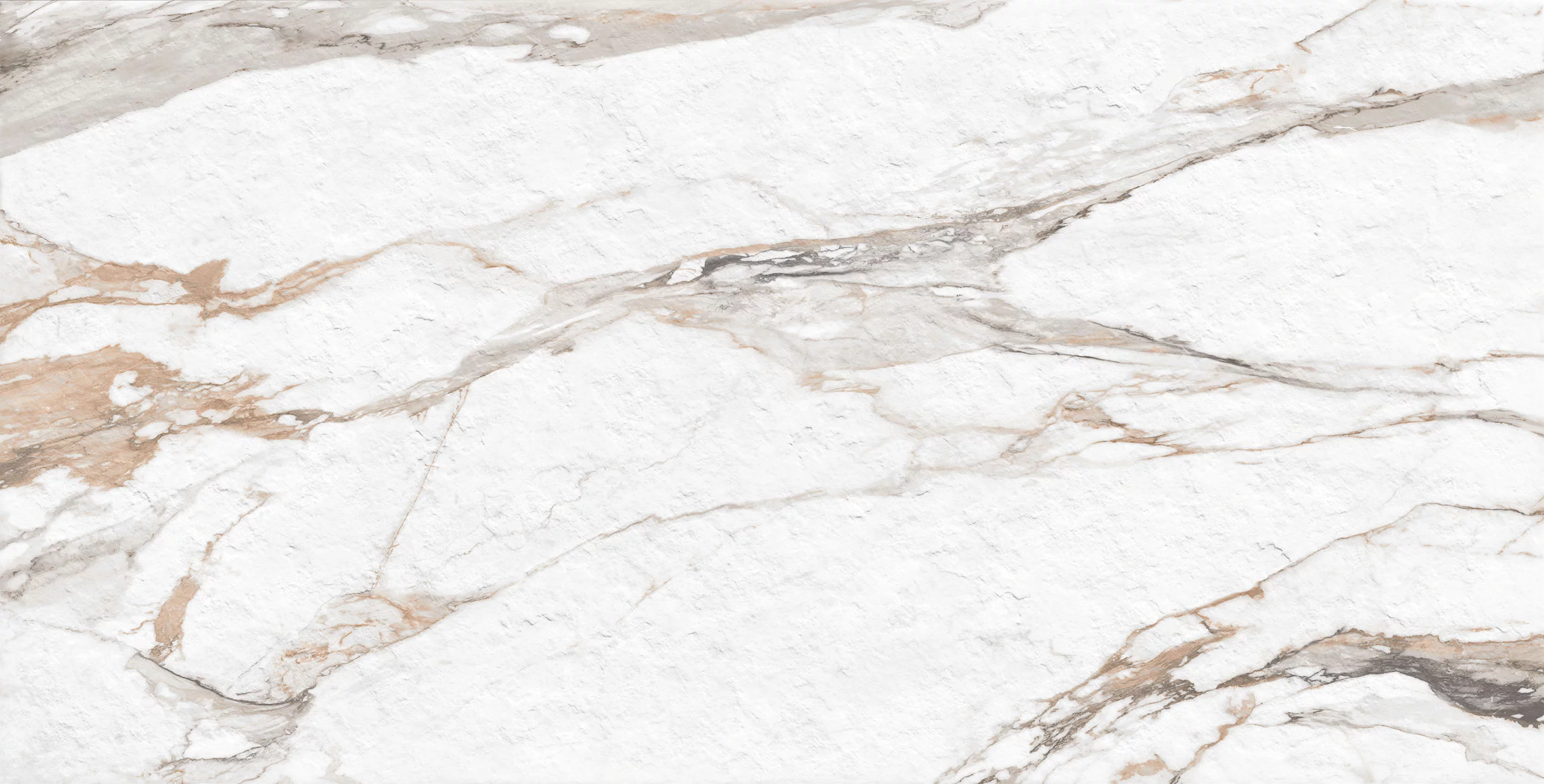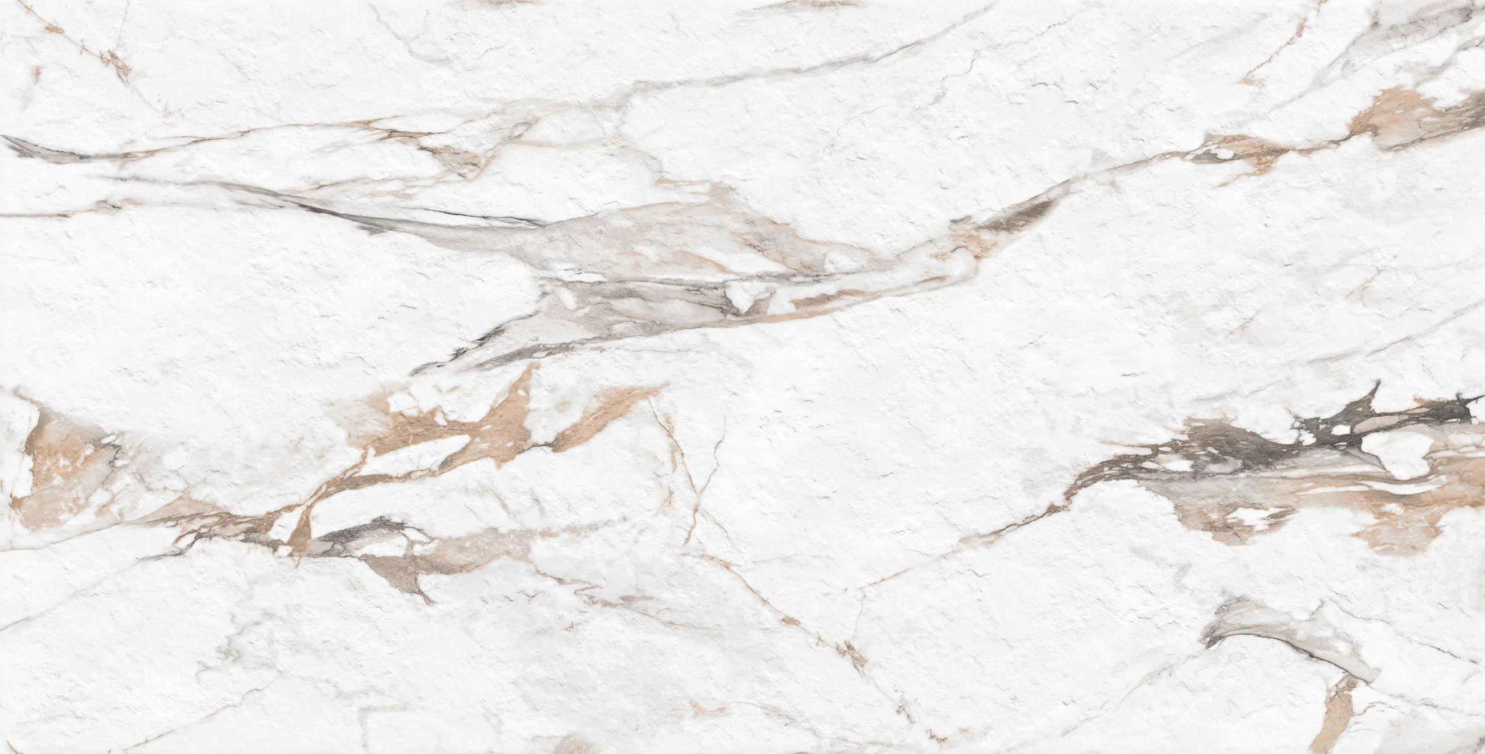 Gresia SATVARIO PORSCHE WHITE BODY - 60X120 cm, porțelanată, îmbină eleganța marmurei cu rezistența ceramicii, având finisaj mat cu punch și un design natural de marmura naturala cu venaturi bej-maronii pe fundal alb.