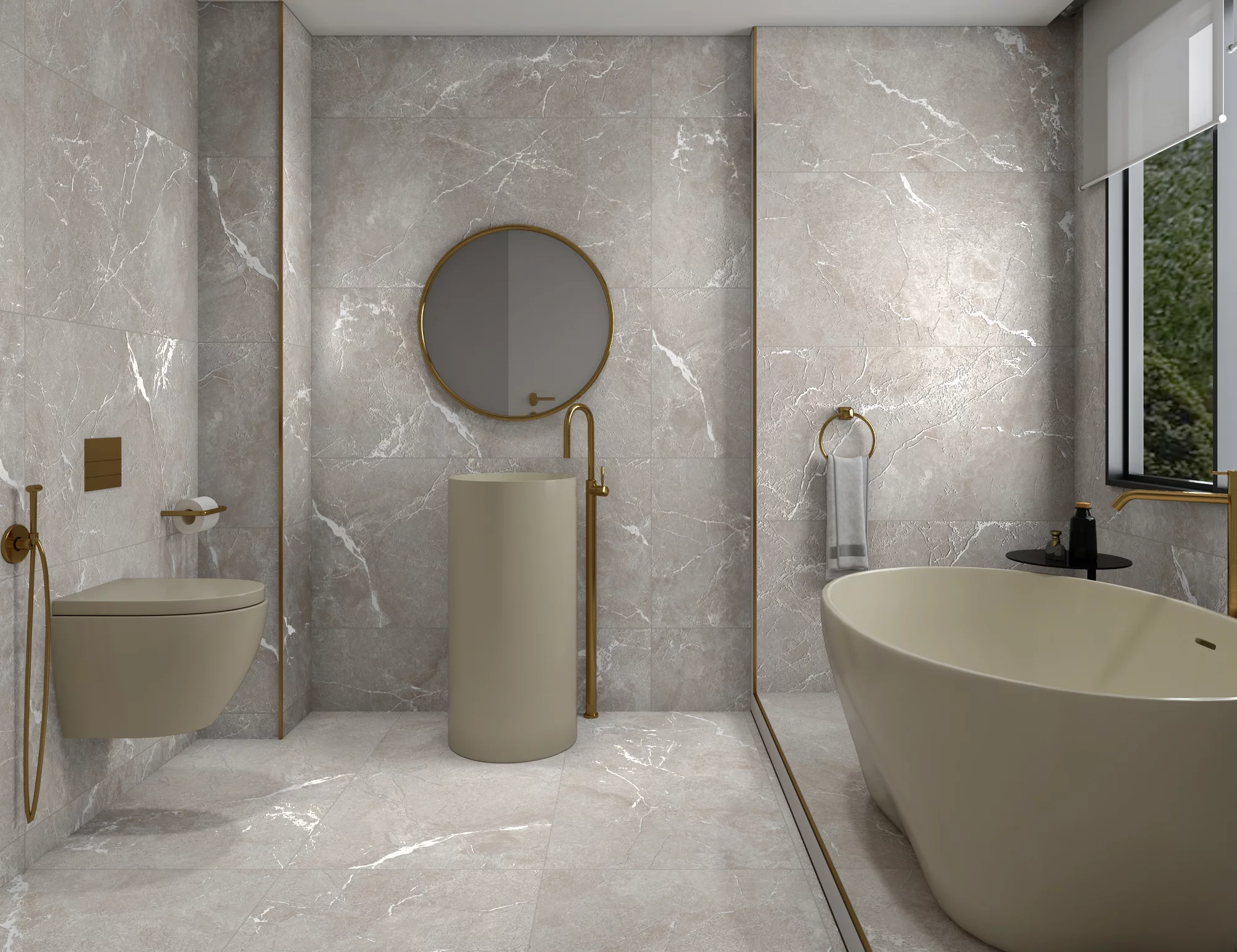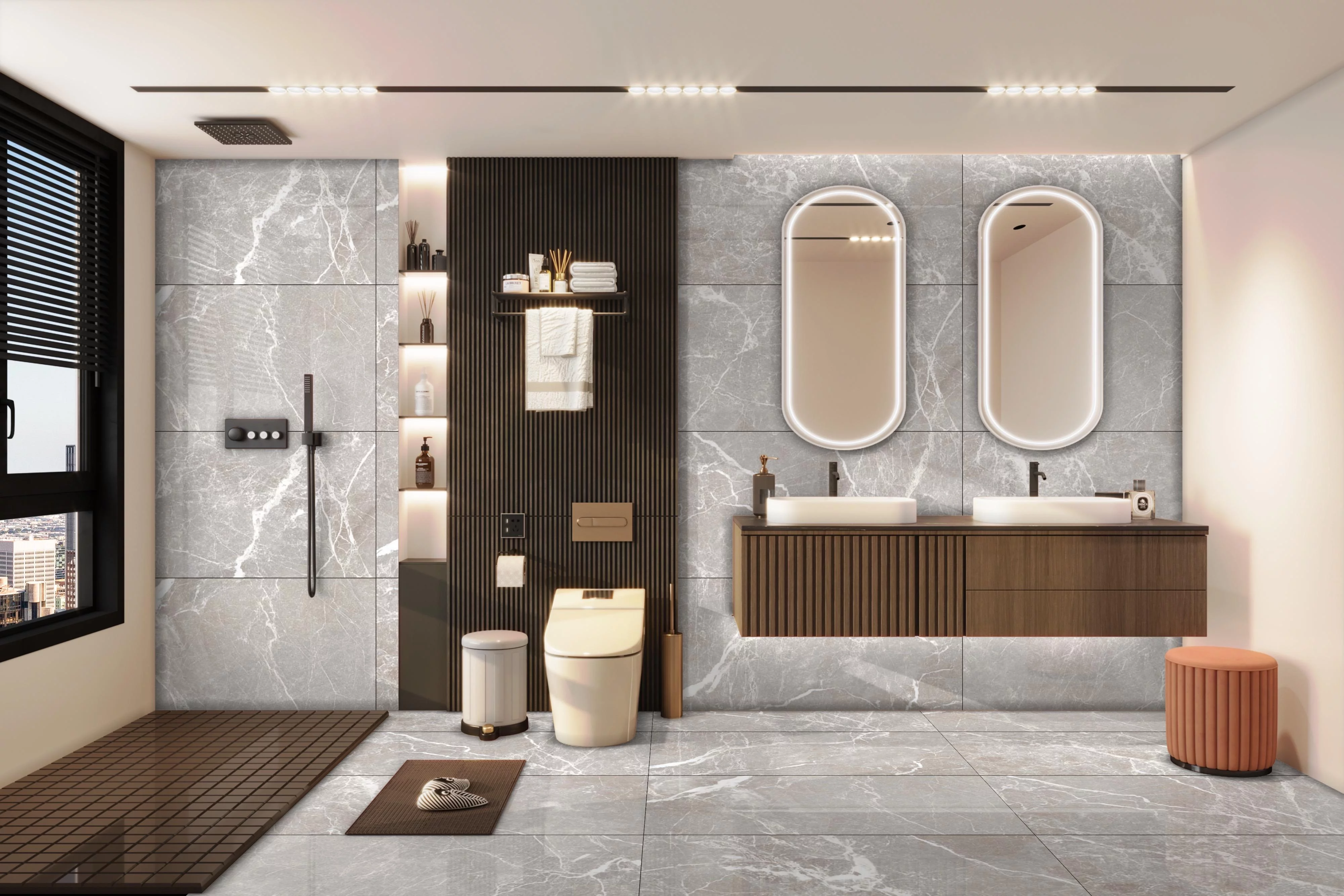 Formatul generos de 60x120 cm, împreună cu marginile rectificate, permite o montare cu rosturi fine, sporind senzația de continuitate și eleganță.