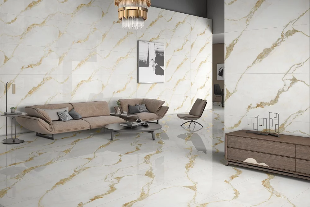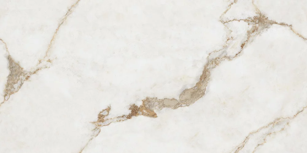 RECTIFICATA, PORTELANATA, GLAZURATA, INTERIOR/EXTERIOR, LUCIOASA CU EFECT GOLD CARVING, ALB CU INSERTII AURII ENDLESS, RANDOM 3, PEI IV, RATA DE ABSORBTIE A APEI SUB 0.5%, COMPATIBILA CU SISTEME DE INCALZIRE IN PARDOSEALA