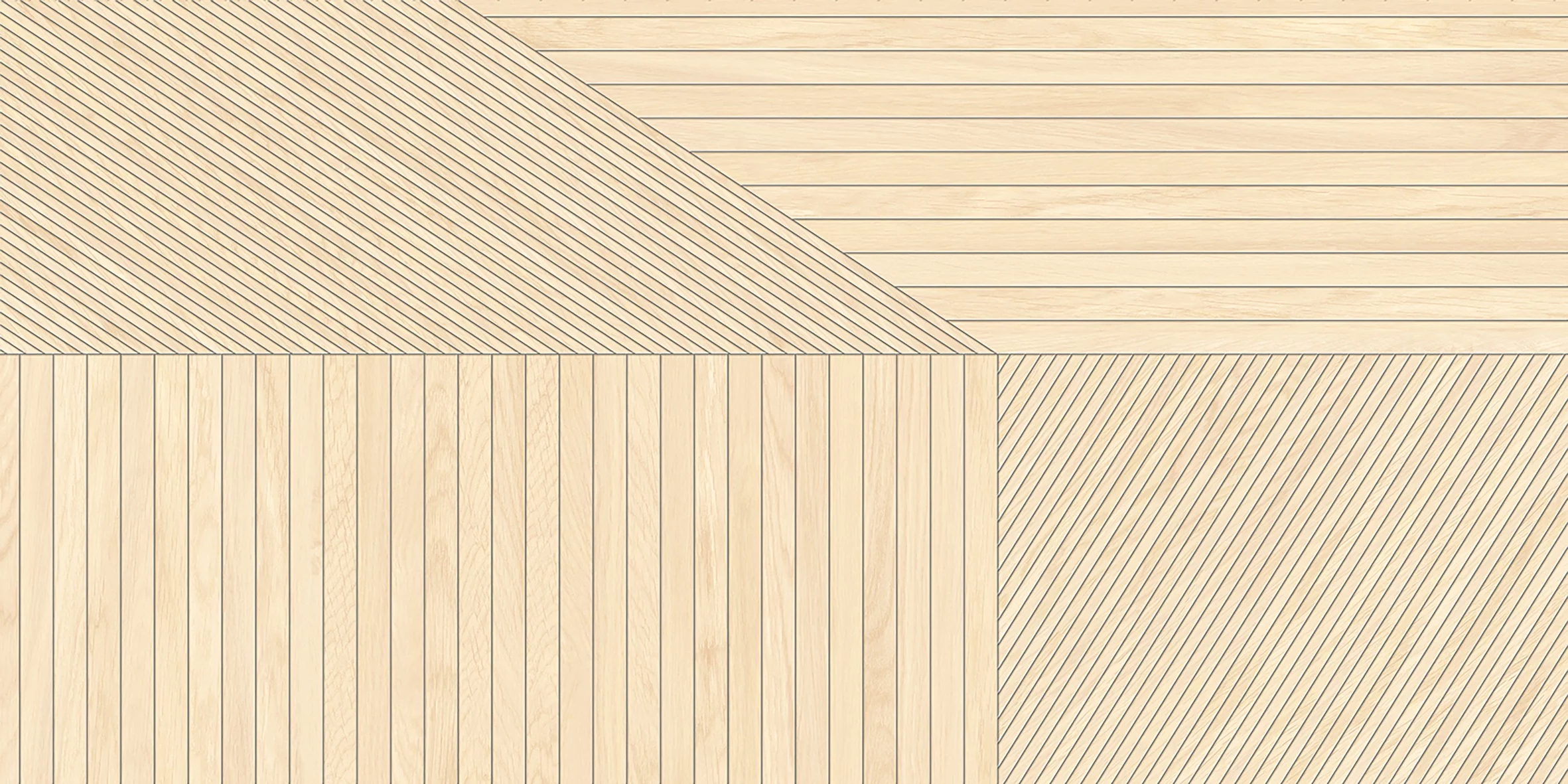 GRESIE MULTICARVING CR CROSS WOOD CREMA - 60X120 cm, portelanata, rectificata, aspect lemn texturat în model geometric, crem-bej, finisaj carving mat, ideală pentru spații modern, interior si exterior.