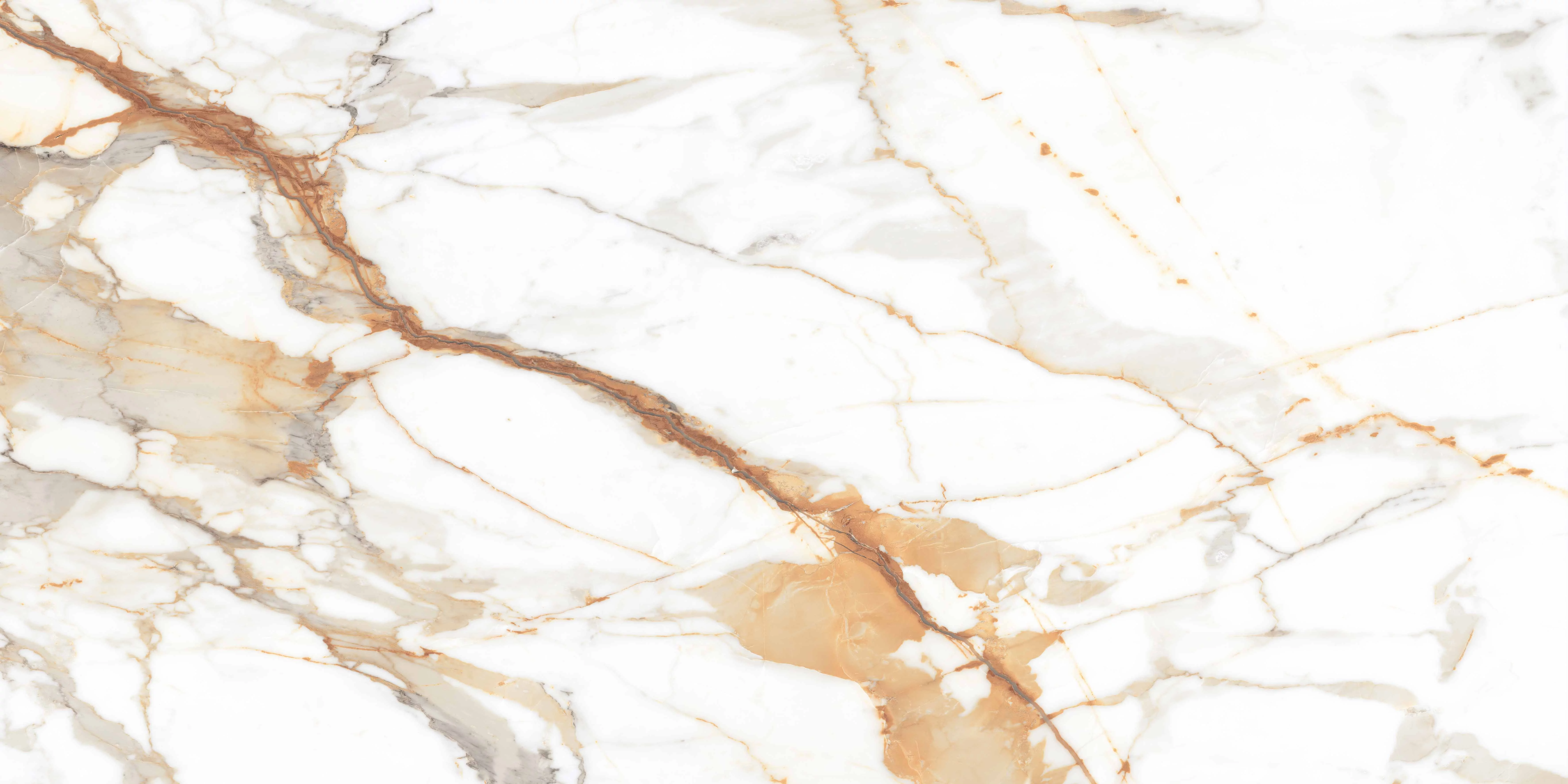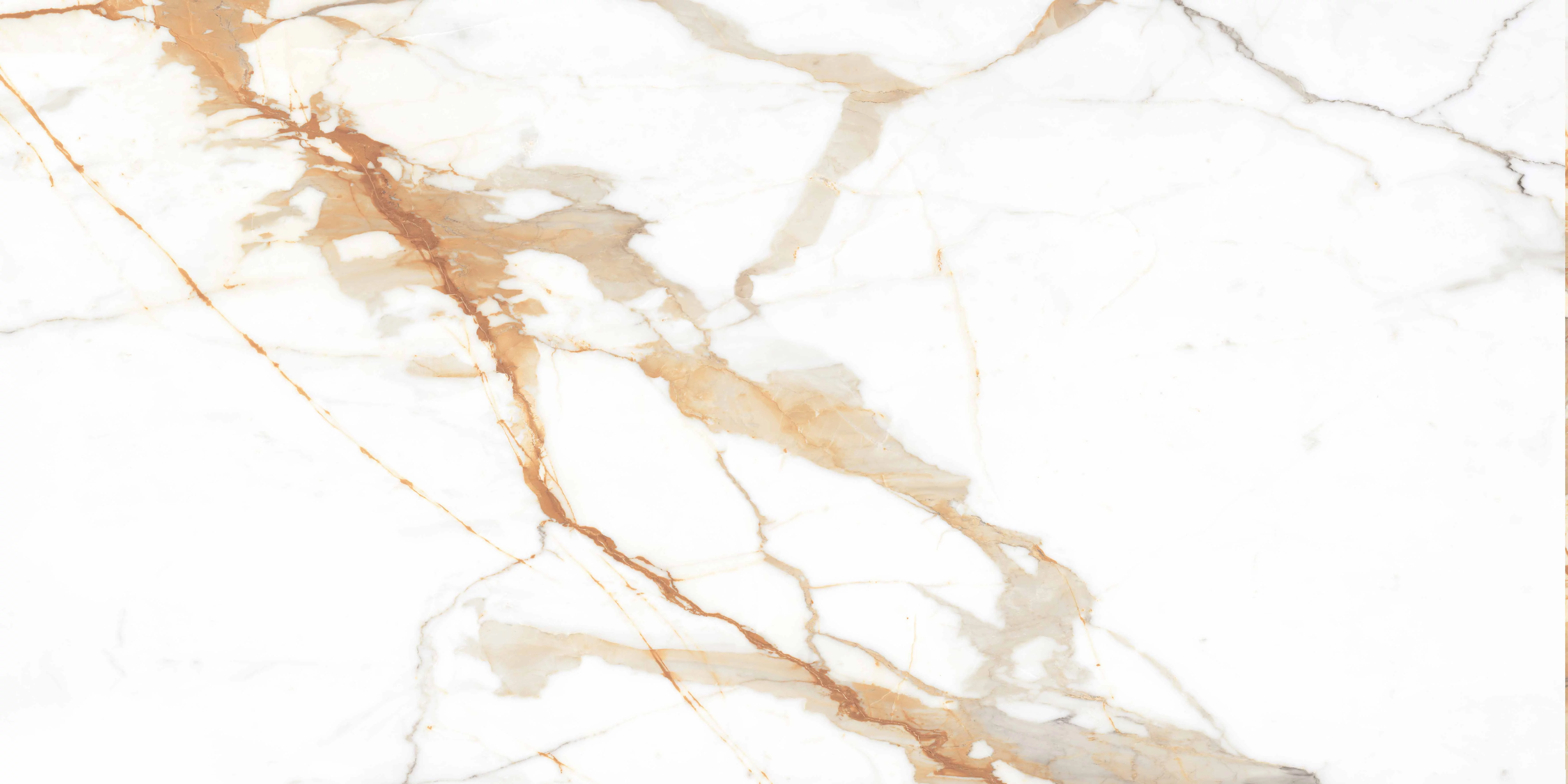 GRESIE CARRARA BROWN - 60X120 cm, portelanata, cu finisaj mat, aspect marmorat în nuanțe de alb, bej și vene aurii-maronii. Ideală pentru spații elegante, compatibilă cu încălzirea în pardoseală.