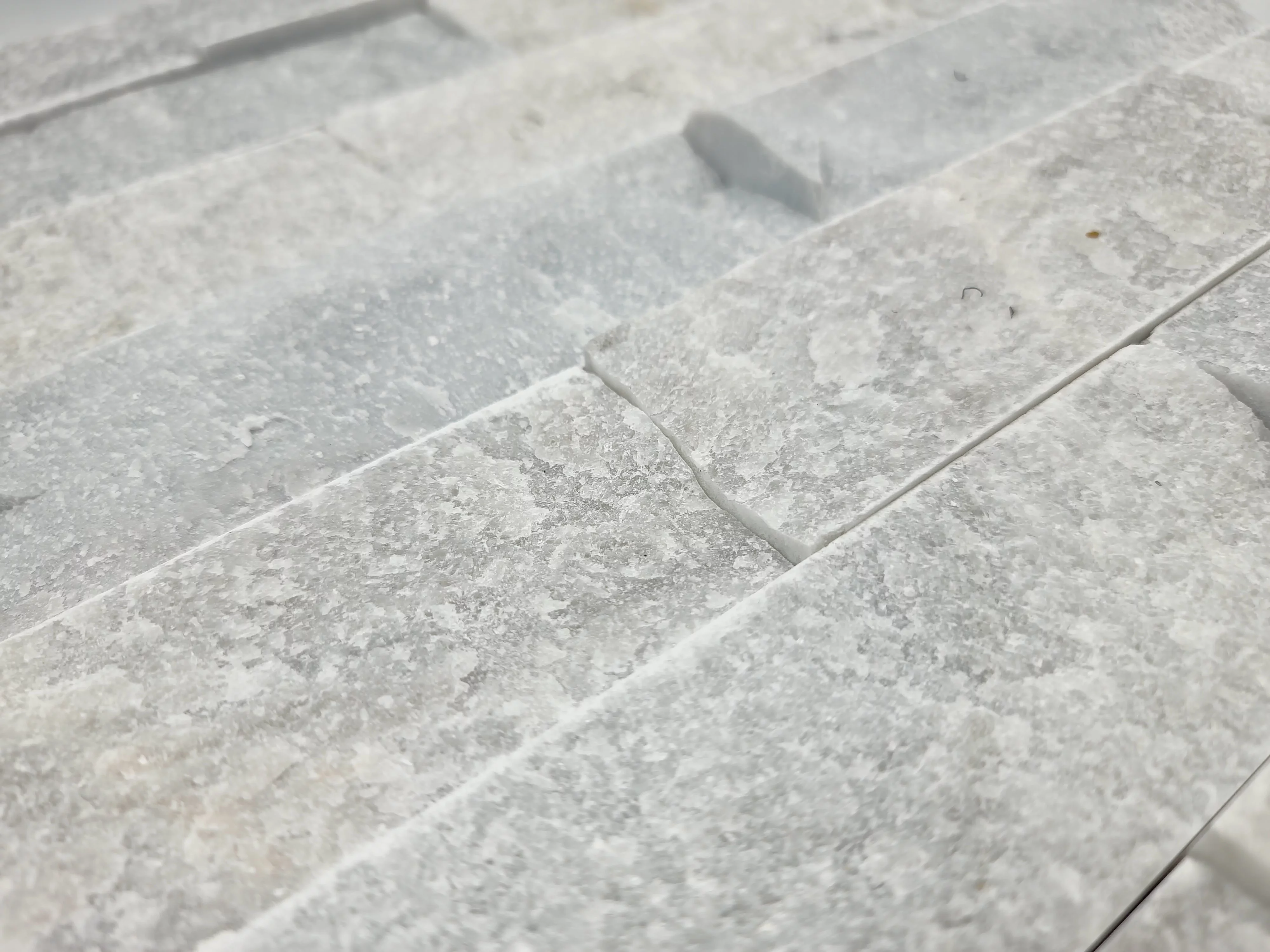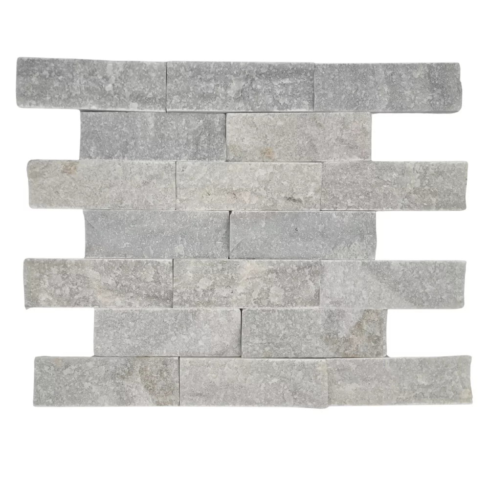 MARMURA SMOKEY GREY - 5X15 cm, cu suprafață scapițată și grosime 1.5–1.8 cm, în nuanțe elegante de gri deschis. Ideală pentru decoruri naturale, moderne sau rustice, atât la interior cât și la exterior.