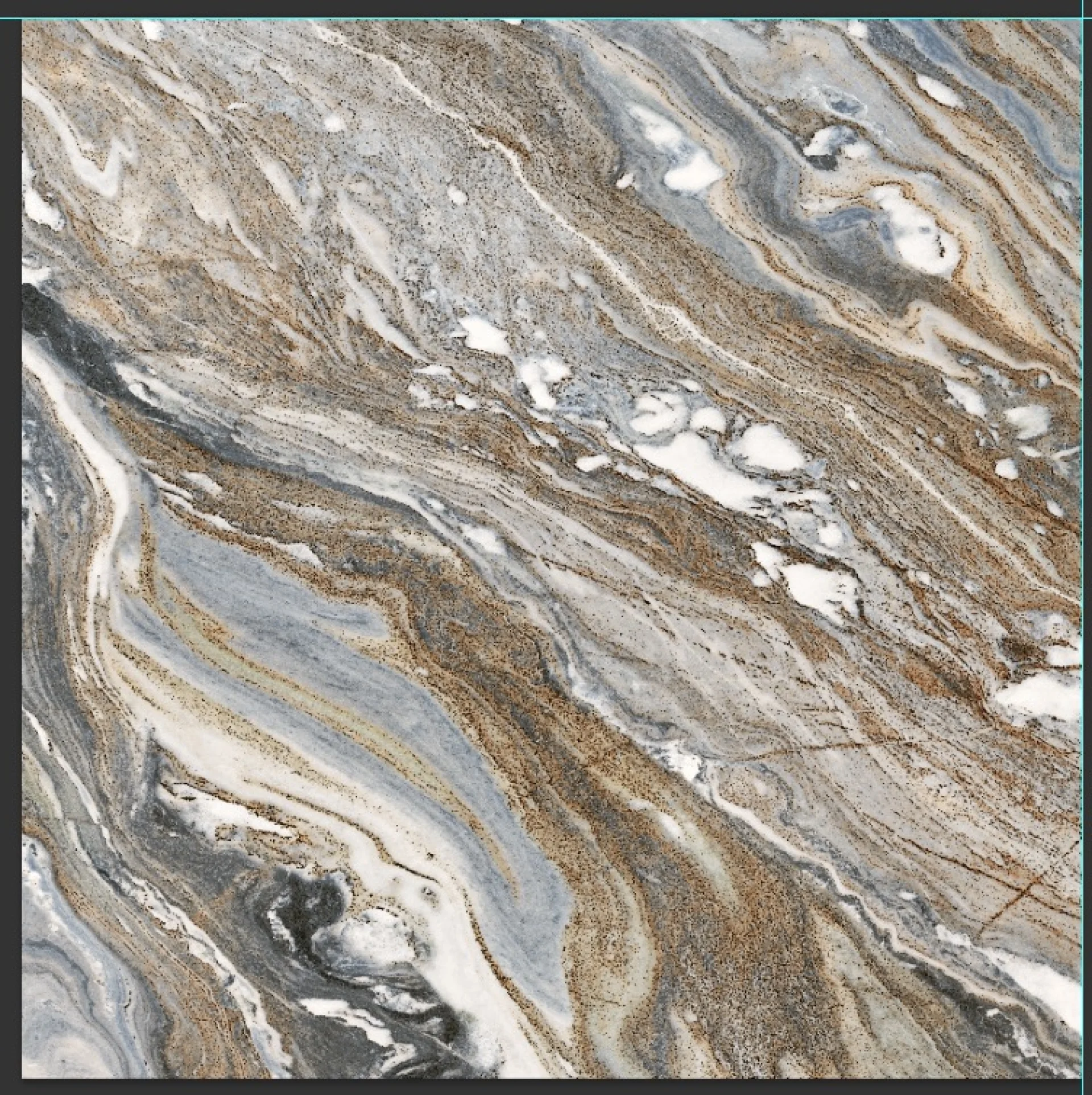 GRESIE GOLD GENOVA (GS88001) - 80X80 cm, porțelanată, glazurata, rectificata, suprafata lucioasa, aspect de marmura naturala in mix de nuante de gri, maro si alb, cu inserții aurii elegante, ideală pentru interioare luxoase și moderne.