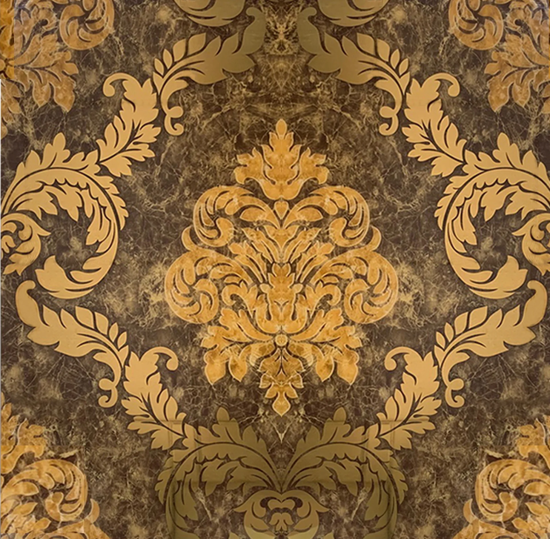 • Design baroc elegant cu accente aurii pe fundal maro marmorat