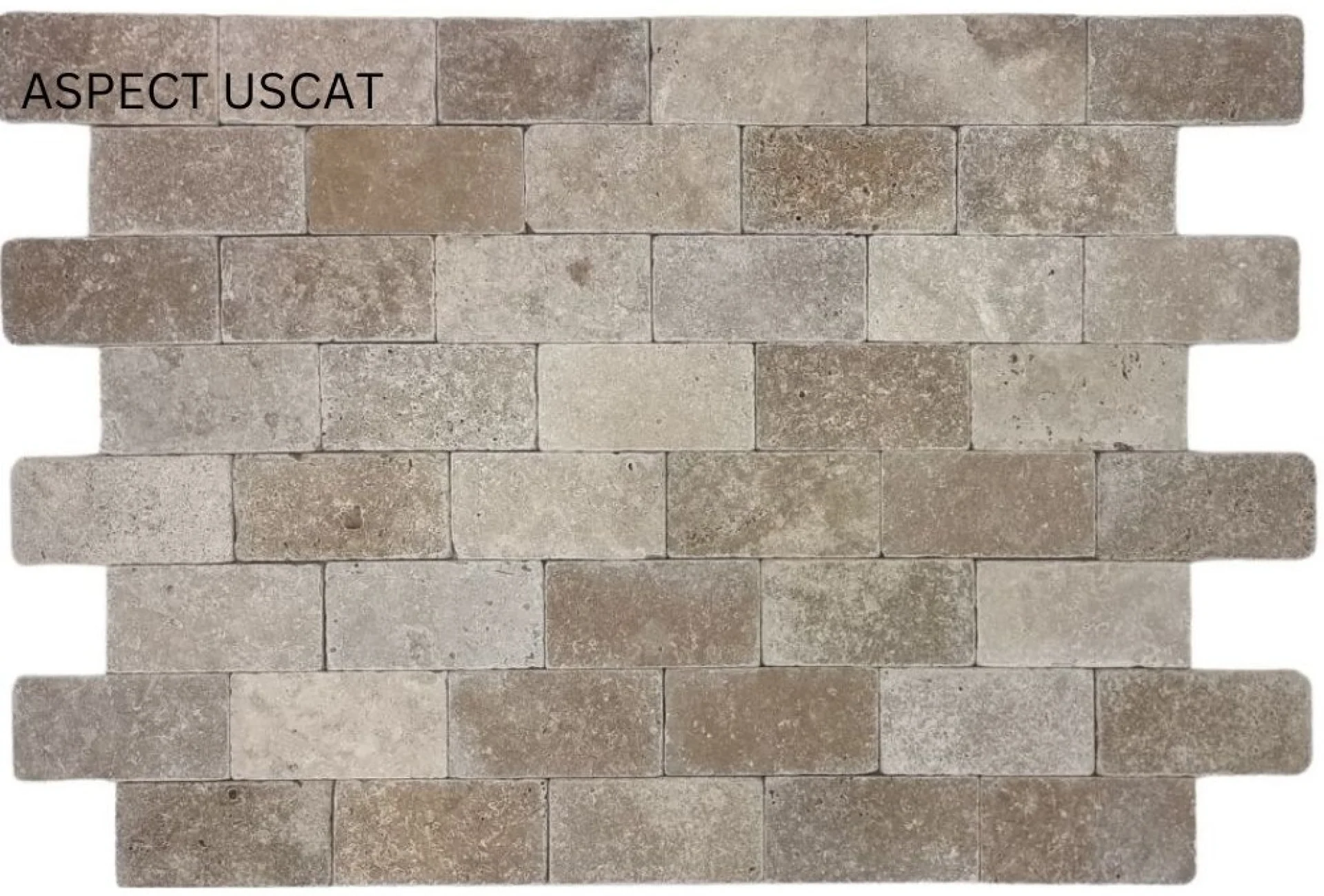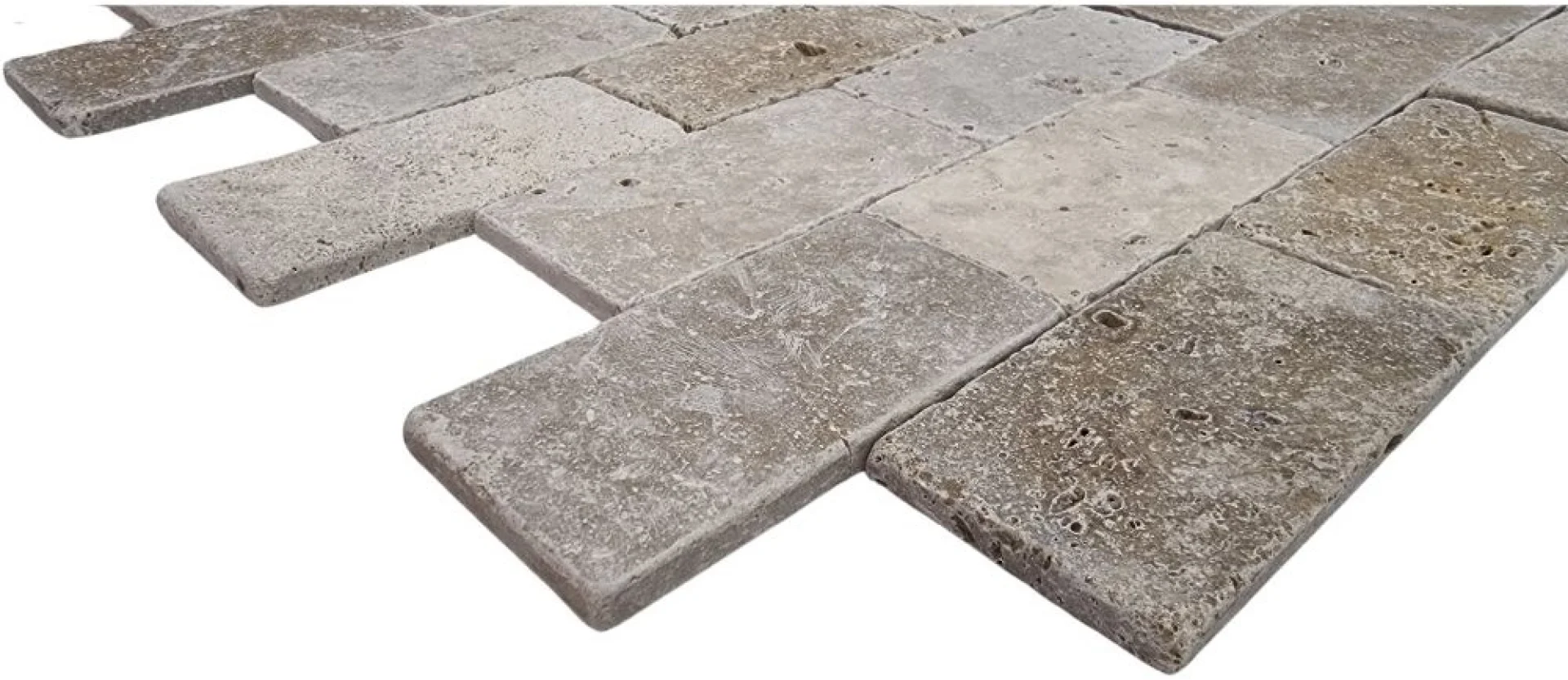 TRAVERTIN NOCHE - 7.6X15.2X1 cm, cu finisaj tumbled (antichizat), disponibil în nuanțe variate de maro și gri, ideal pentru proiecte decorative interioare și exterioare cu aspect rustic.