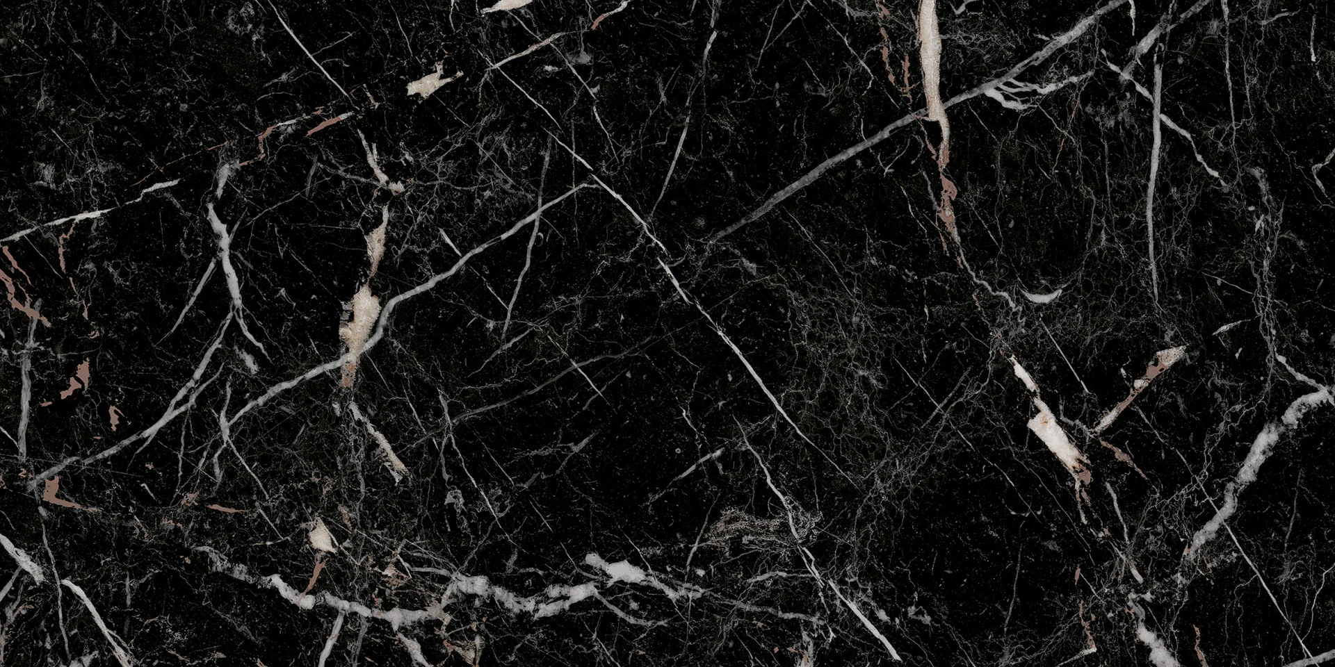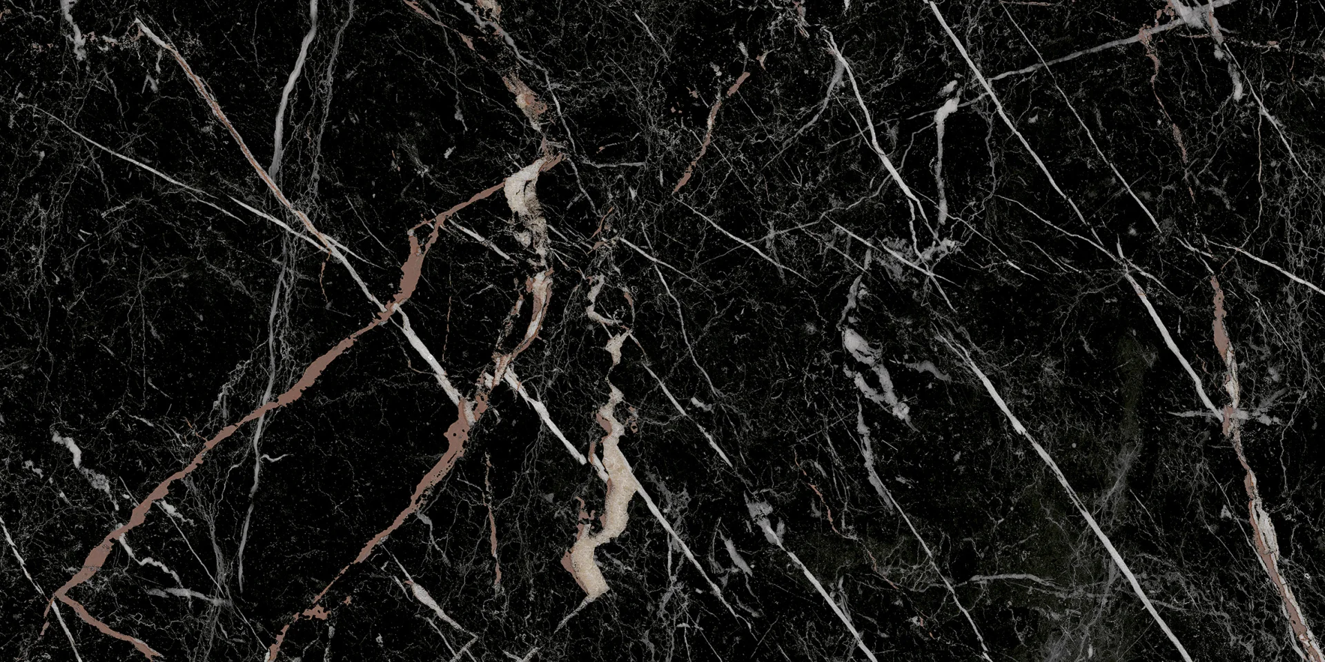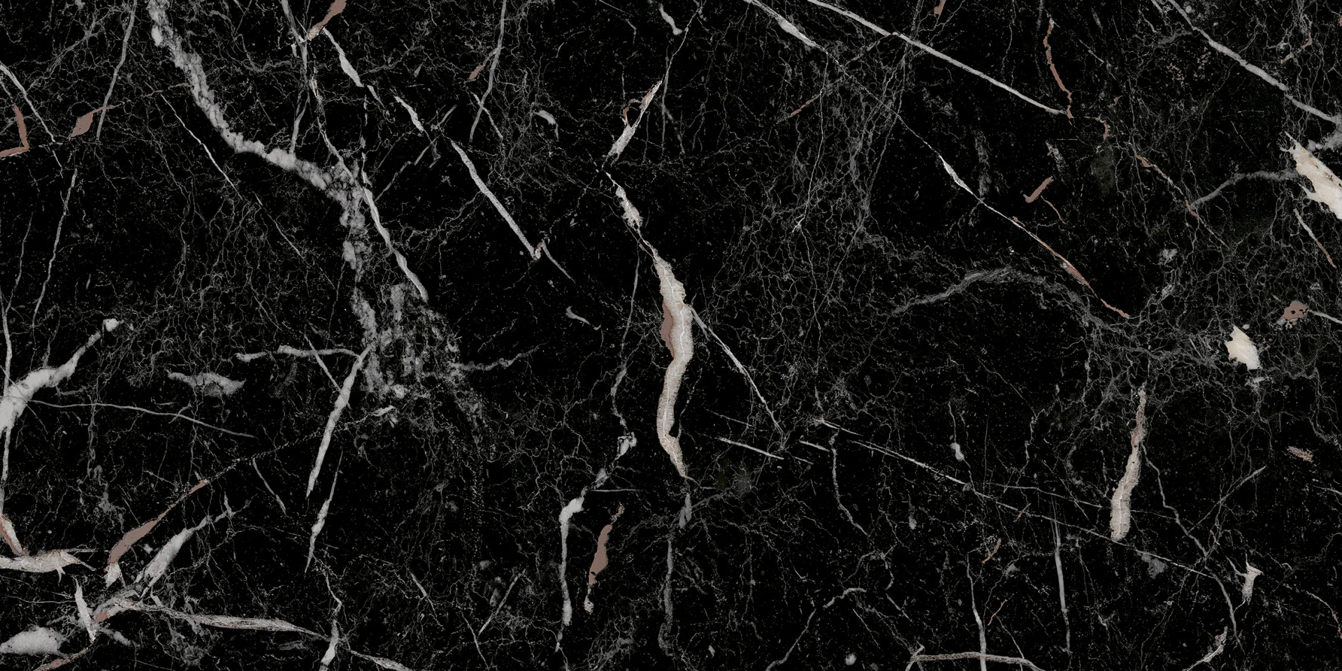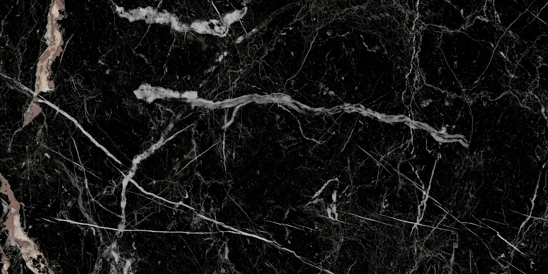 FAIANTA ITALIANO BLACK - 30X60 cm, ceramica glazurată, interior, rectificată, mată, cu design elegant de marmură neagră cu vinișoare albe și bronz roșiatic.