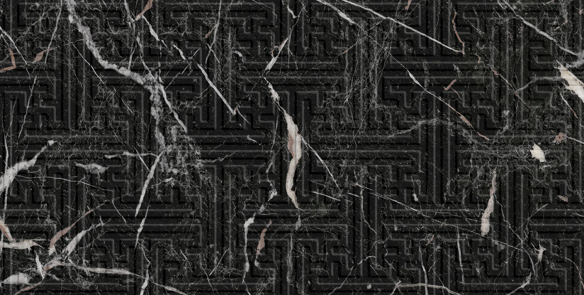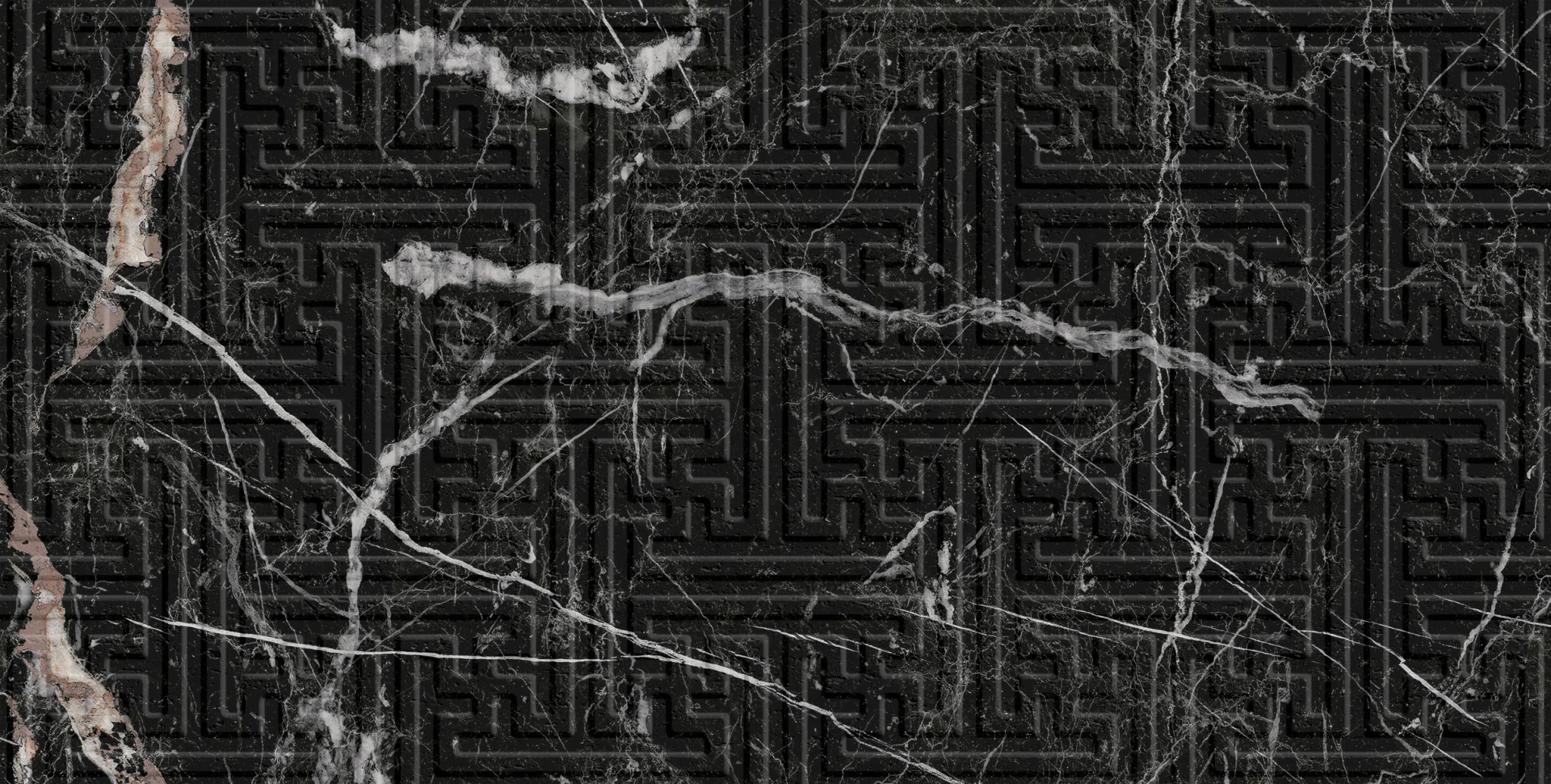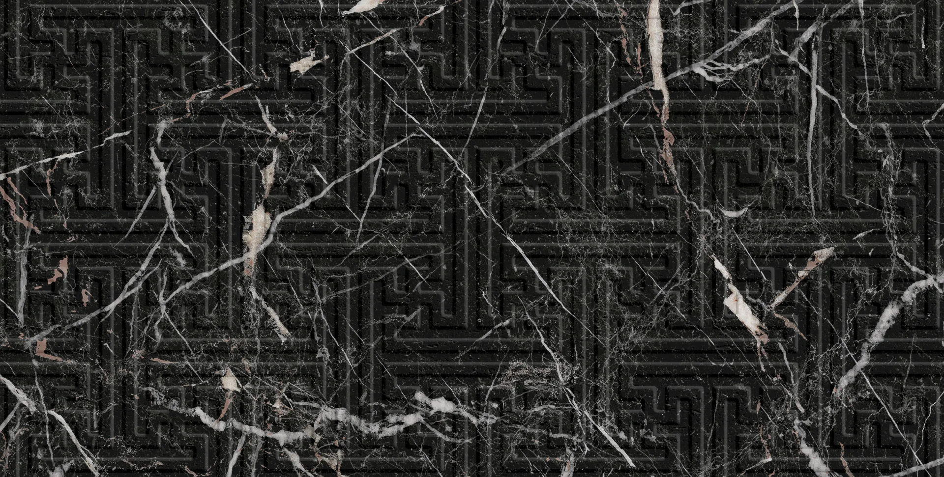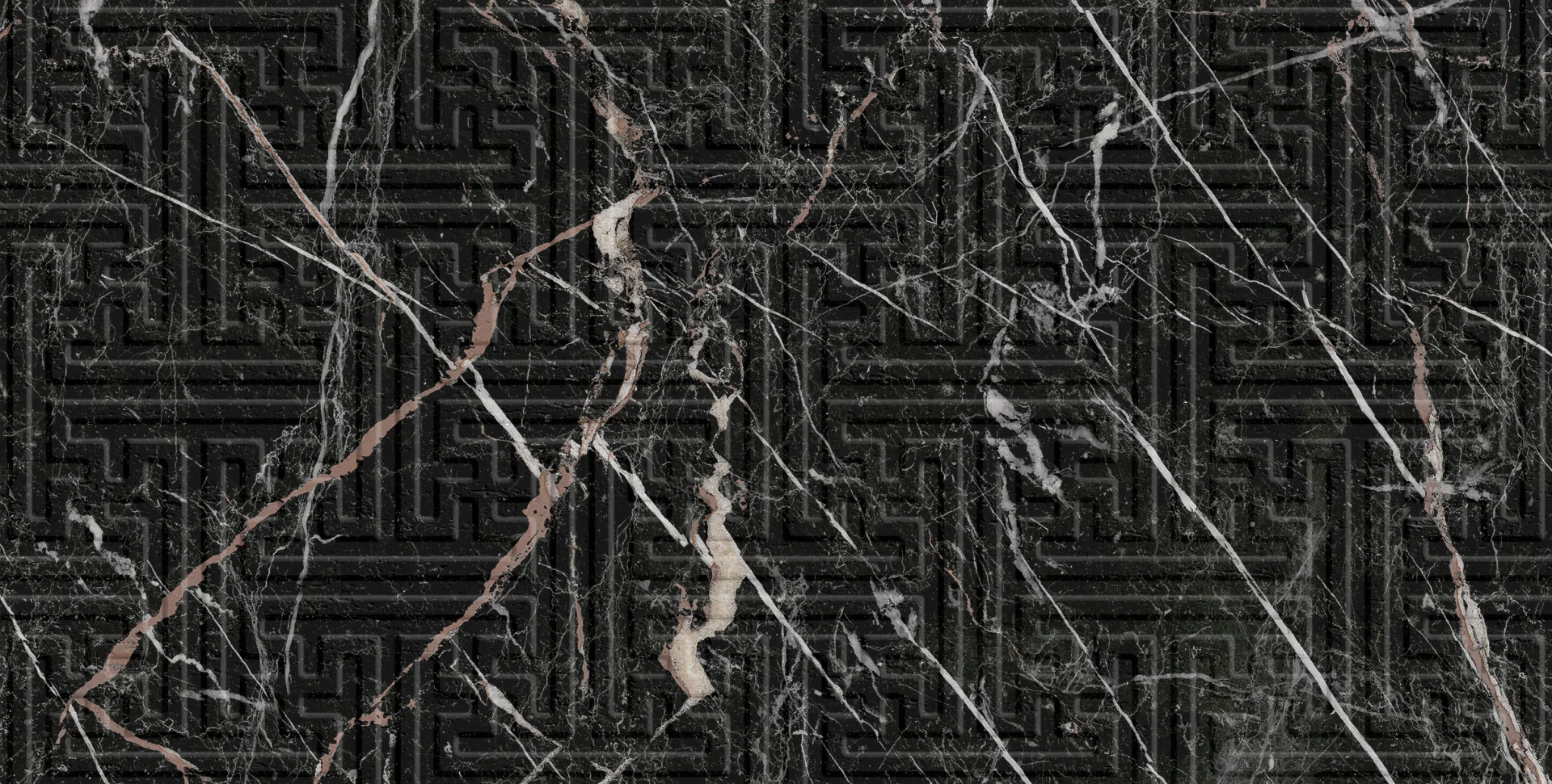 Designul său unic combină rafinamentul marmurei negre cu vinișoare albe și bronz-roșiatic cu un model geometric 3D subtil, adăugat în relief mat.